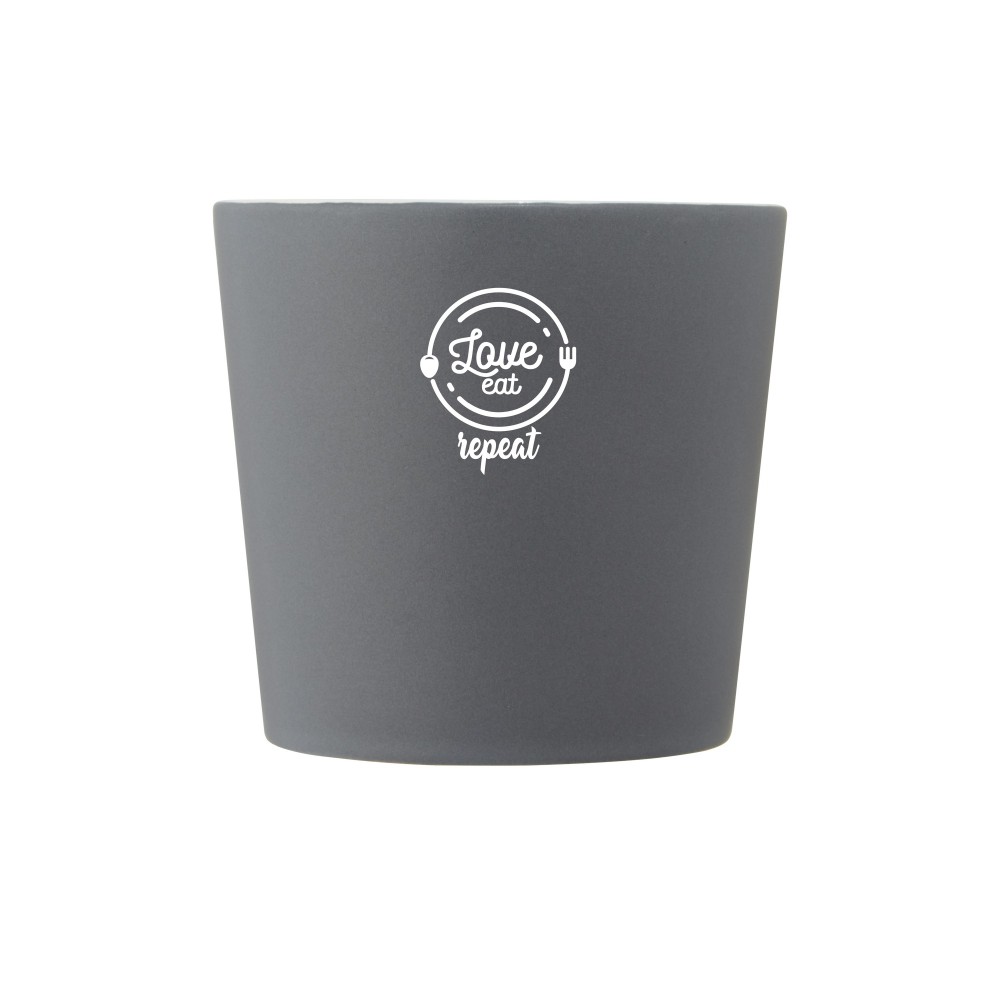 Kerámia bögre modern dizájnnal és matt felülettel. Nem szivárgásmentes. Szénsavas italokkal is használható. Mosogatógépben mosható és mikrohullámú sütőben történő melegítésre alkalmas. Űrtartalom: 370 ml. Újrahasznosított karton díszdobozban. Emblémázás: Bögredekor, Matricázás