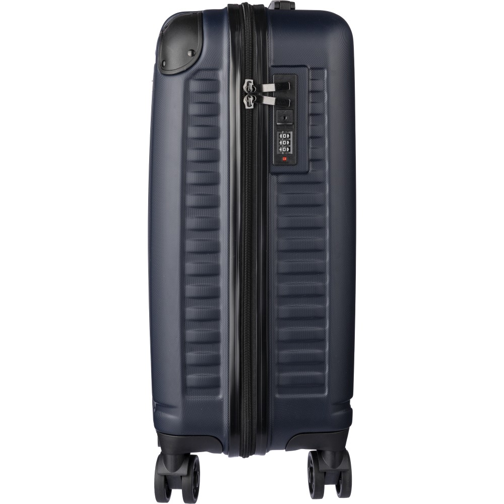Gurulós bőrönd 8 kerékkel és háromszintű fogantyúrendszerrel. Beépített számzár és külön lapocska a lézergravírozáshoz. USB porttal. Emblémázás: Gravírozás