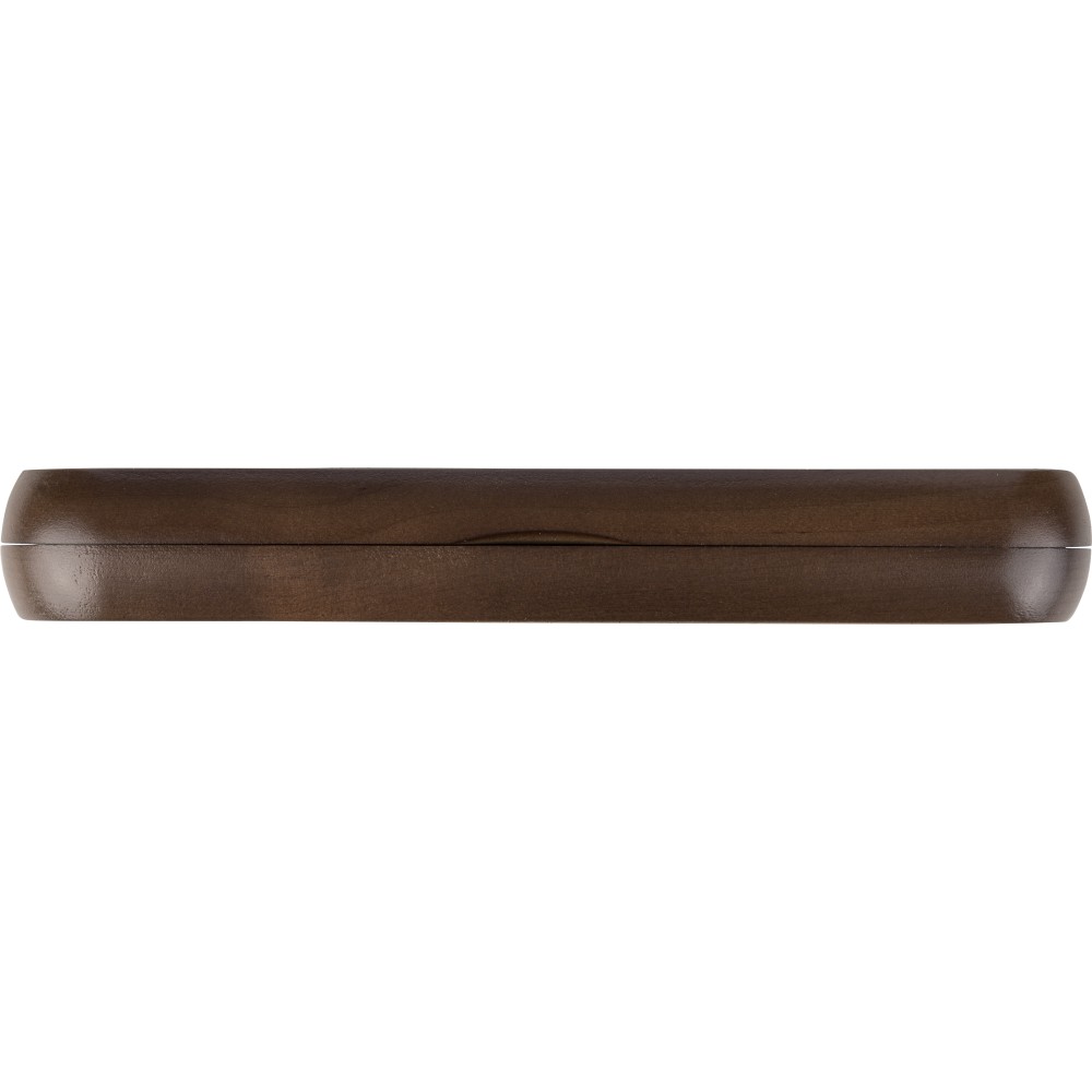 Diófából és rézből készült csavarós golyóstoll fém tollheggyel, klippel és díszítéssel, kék színű, német Dokumental tollbetéttel, megközelítőleg 1000 méter íráshosszúsággal. Juharfából készült dobozba és kartondobozba van csomagolva.