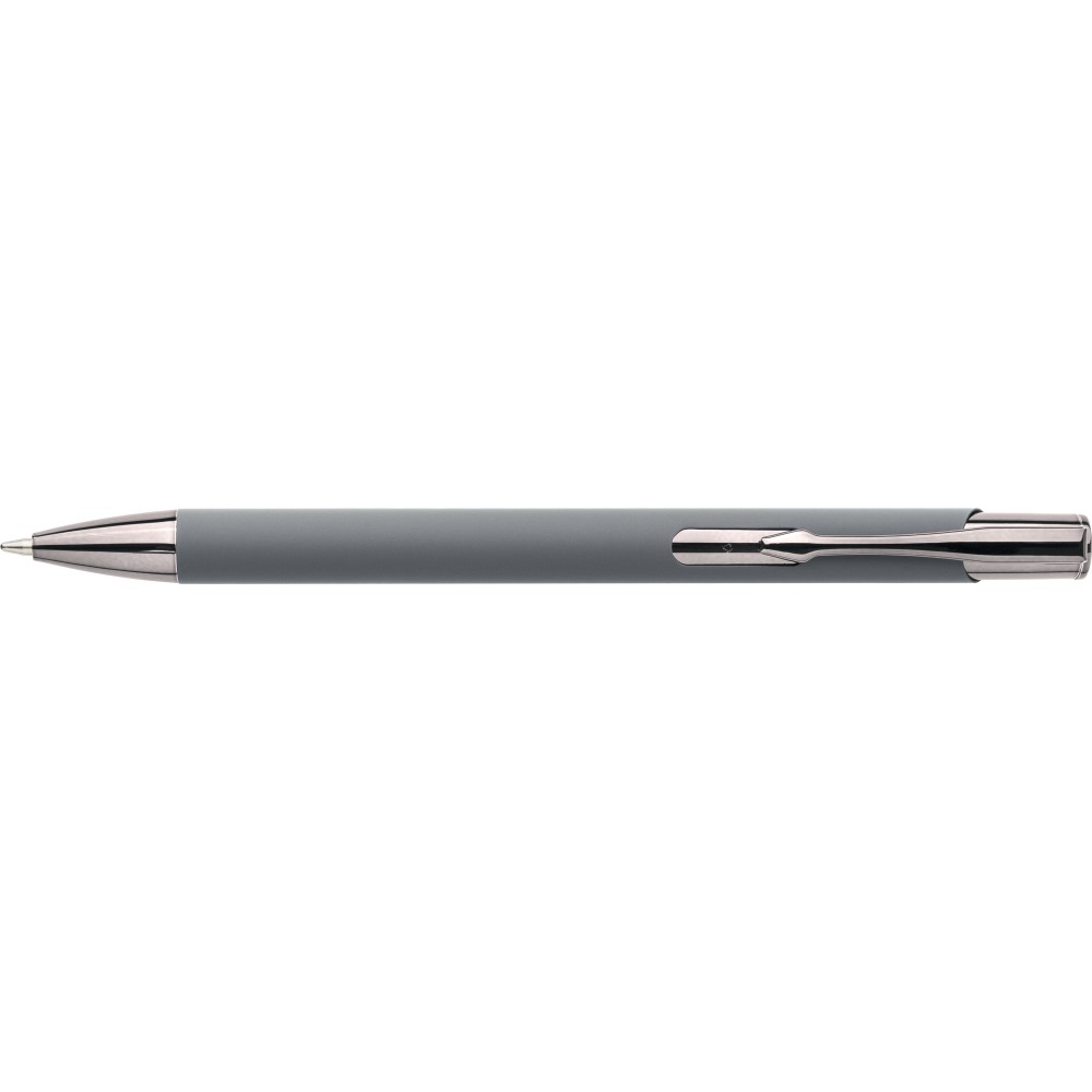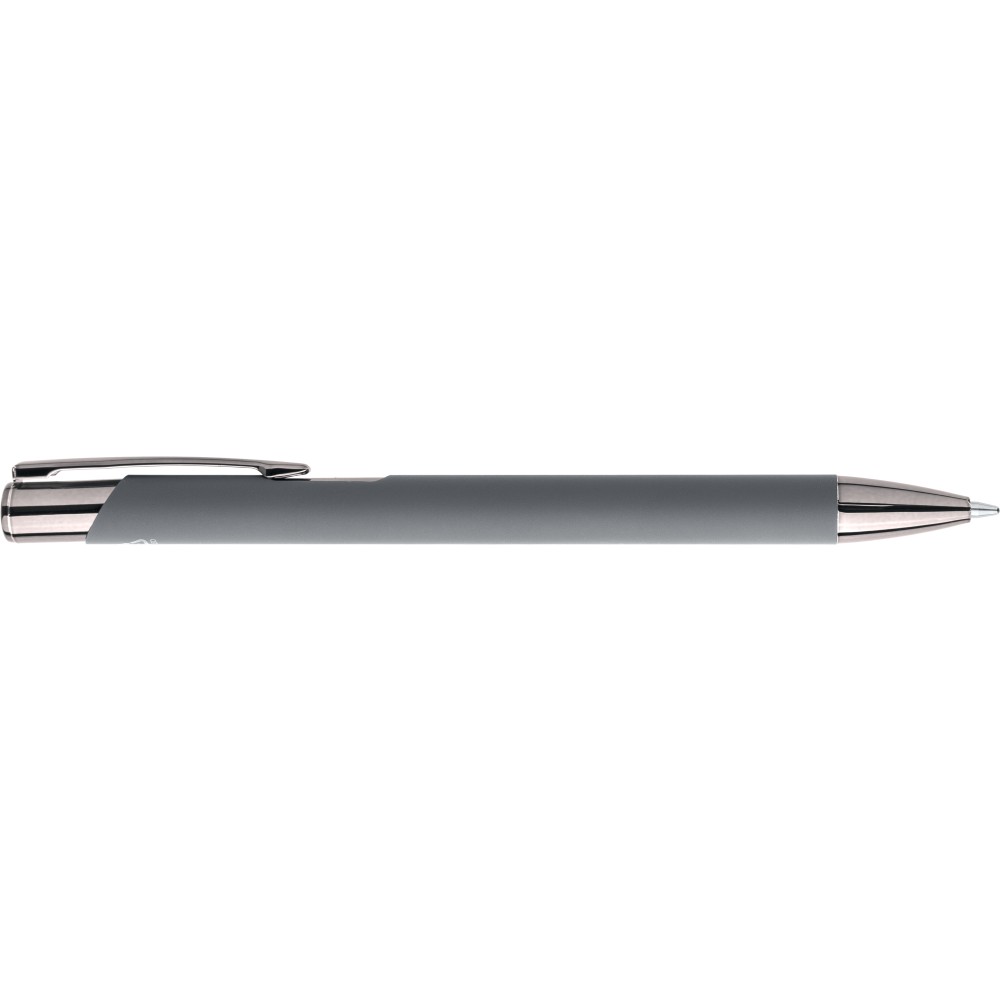 Újrahasznosított alumíniumból készült, gumírozott felületű golyóstoll, a toll színével harmonizáló UV-bevonatú műanyag és fém díszítéssel. Gravírozás után fényes tükörhatás jelenik meg. A tolltesten gravírozott recycled (újrahasznosított) alapanyagra utaló logó található. Megközelítőleg 800 méter íráshosszúságú, kék színű tollbetéttel.