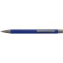 Újrahasznosított alumínium golyóstoll lágy tapintású gumírozott felülettel és kék tollbetéttel. Sötétszürke kiegészítőkkel és a bevonat alatti tükörhatású réteggel tervezve a látványos gravírozási eredmény érdekében. Nyomógombos szerkezettel és gravírozott újrahasznosított logóval.