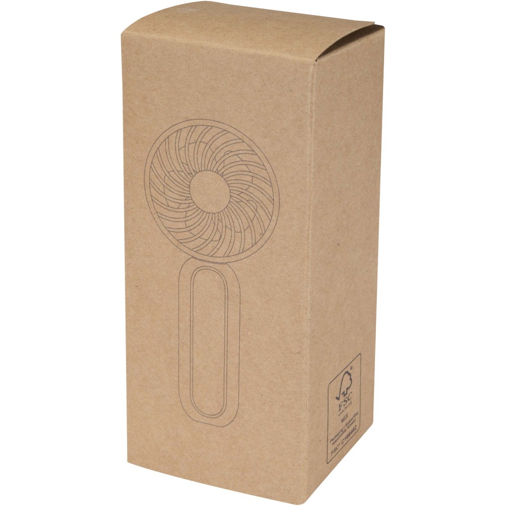 Ez az újrahasznosított műanyagból készült, hordozható mini ventilátor kompakt, utazásbarát kialakításával és három választható sebességfokozatával ideális választás kültéri rendezvényekhez, klubokba vagy fesztiválokhoz. A termék gyors és kényelmes hűtést biztosít útközben, így praktikus nyári kiegészítő a mindennapi használathoz vagy utazásokhoz. A ventilátor üzemideje alacsony fokozaton 3 óra, közepes fokozaton 2 óra, magas fokozaton pedig 1,2 óra. Az akkumulátor a mellékelt USB-A - USB-C töltőkábellel tölthető fel, a teljes feltöltési idő 0-ról 100%-ra 2 órát vesz igénybe.