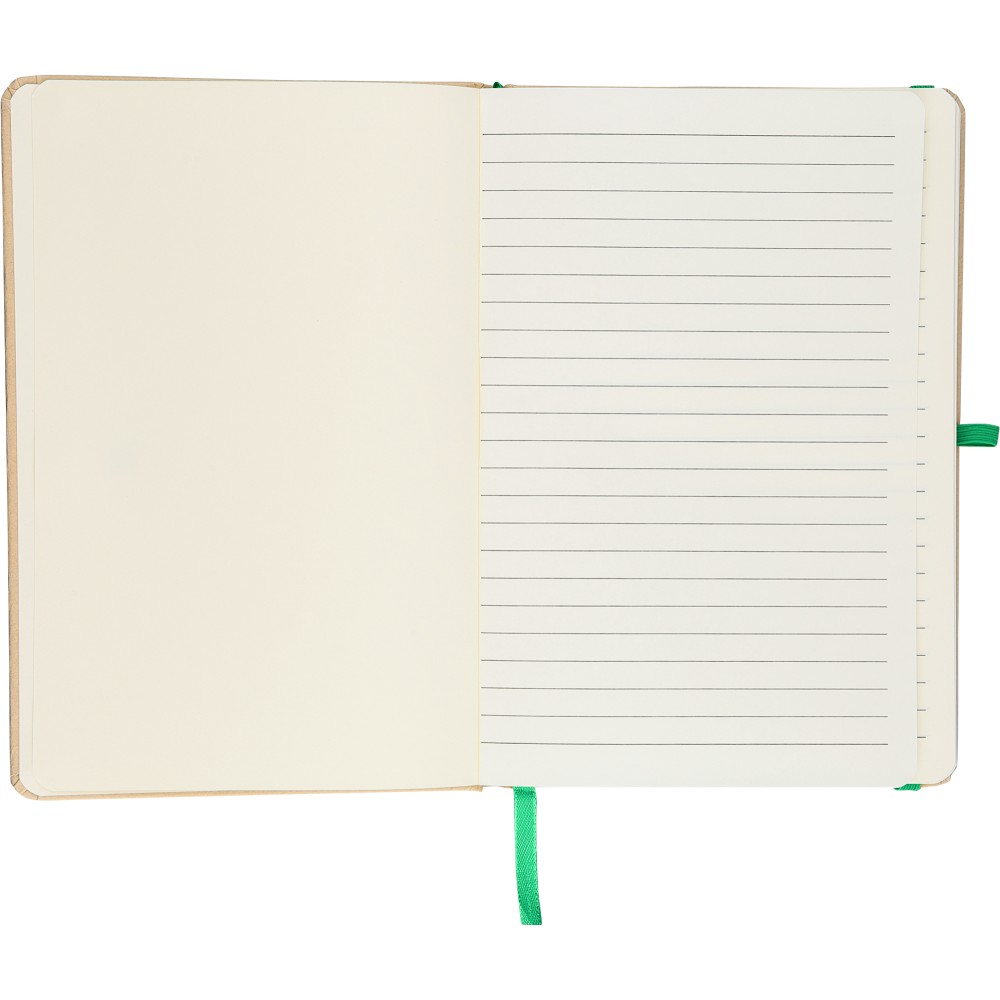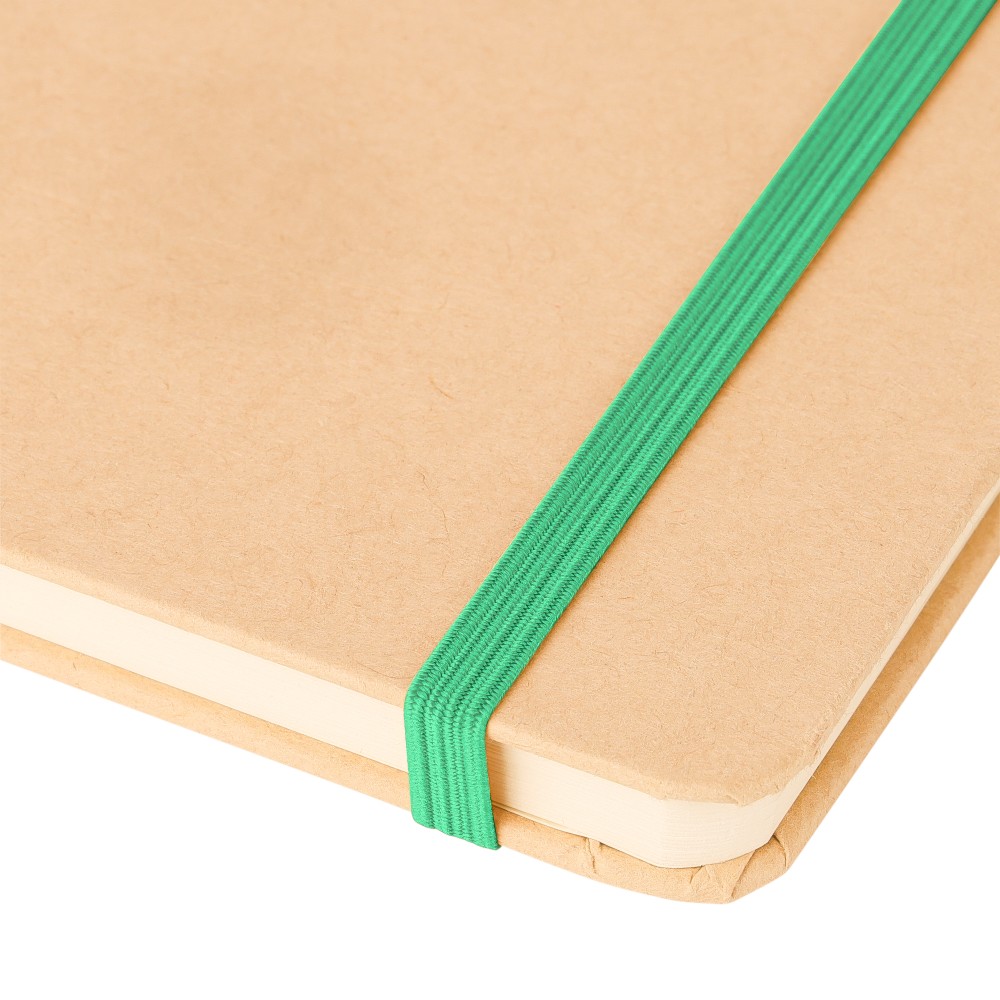 A5-ös jegyzetfüzet kemény nátronpapír (kraft) borítással és alumínium fólia hordozóréteggel, amelyet lézergravírozáshoz terveztek: a gravírozás után látványos tükörhatás válik láthatóvá. 80 vonalas, 70 g/m2 súlyú lapot tartalmaz a sima írásélmény érdekében. A füzetben használt papír FSCŽ Mix tanúsítvánnyal rendelkezik. Színben passzoló részletekkel, például gumírozott rögzítőpánttal, könyvjelző szalaggal és tolltartó hurokkal rendelkezik.