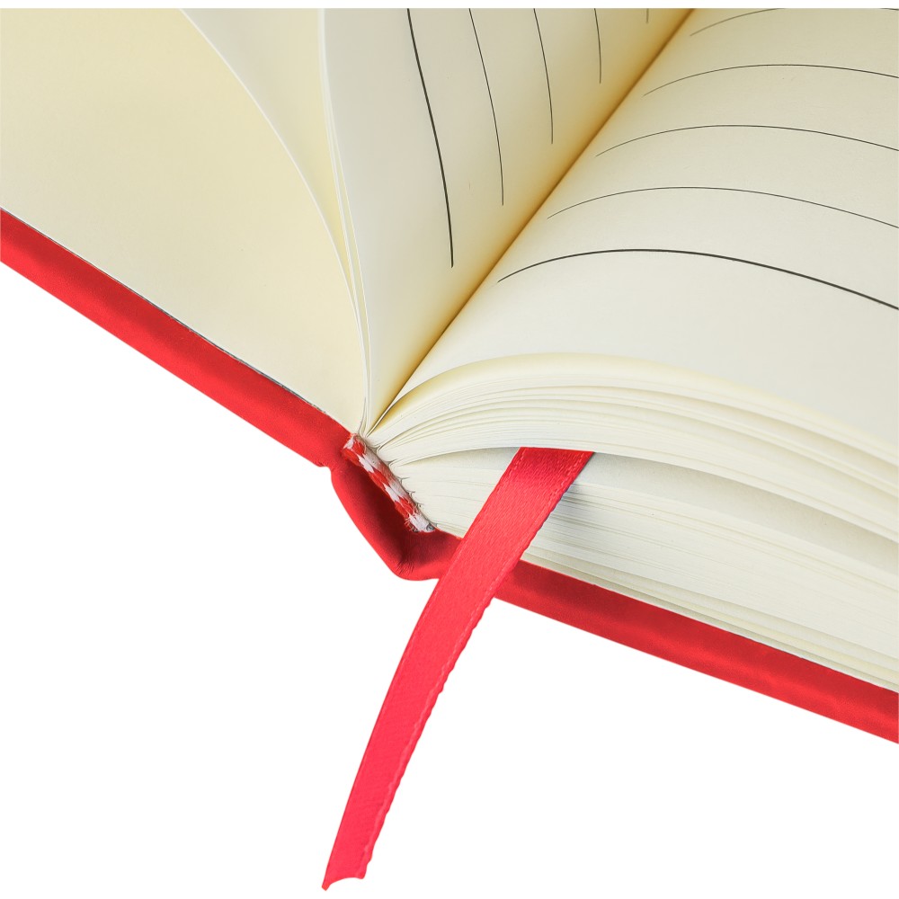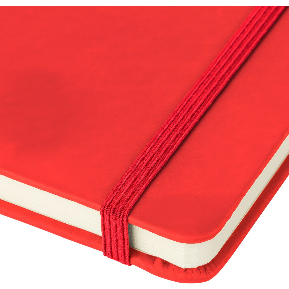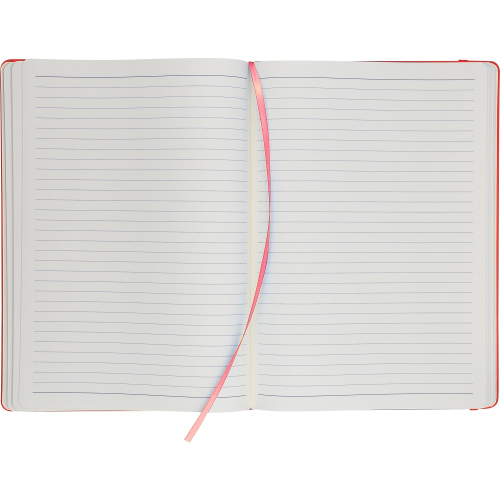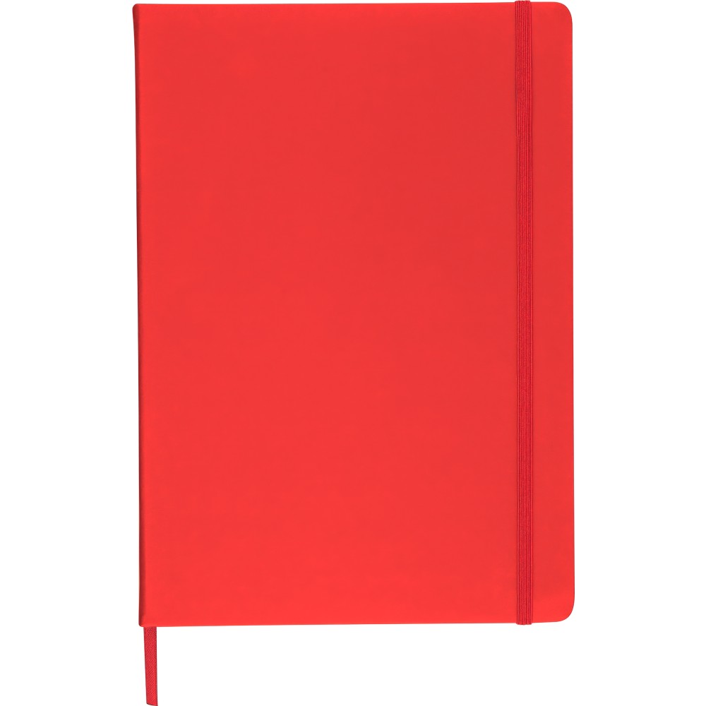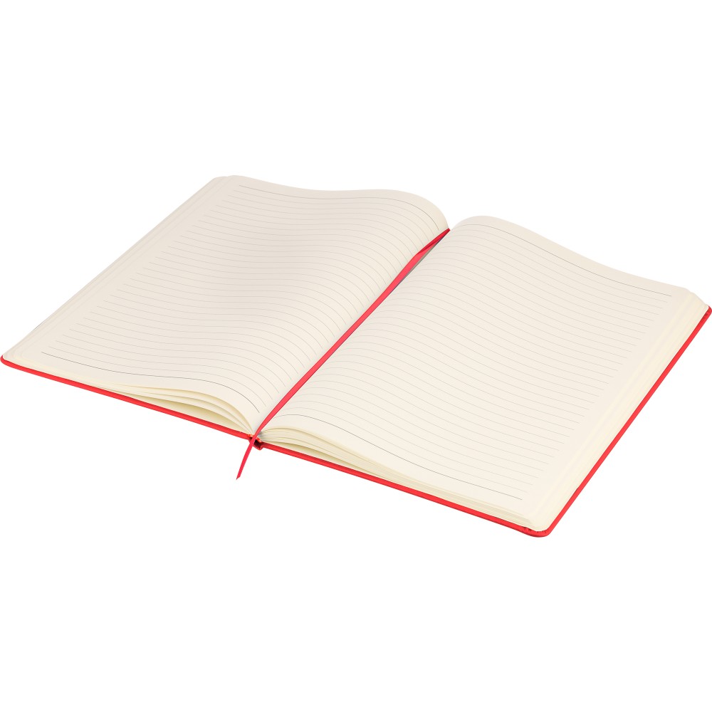 A4-es jegyzetfüzet élénk színű, újrahasznosított anyagból (PU) készült kemény borítóval. 96 db kétoldalas, vonalas lapot tartalmaz (6 g/m2), 0,7 cm-es vonalközzel, az elején és a végén két-két üres oldallal. A füzetben használt papír FSCŽ Mix tanúsítvánnyal rendelkezik. Színben illeszkedő gumírozott rögzítőpánttal, beépített könyvjelző szalaggal és a hátoldalán dombornyomott újrahasznosított PU logóval ellátva.