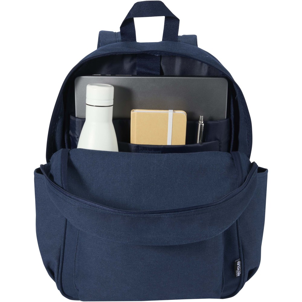 A Recanvas városi hátizsák GRS tanúsítvánnyal rendelkező, újrahasznosított és vízlepergető vászonból készült, színben harmonizáló RPET béléssel. A 16 literes űrtartalmú táska egy párnázott, 15,6"-os laptoprekesszel és egy további párnázott tárolórekesszel rendelkezik, emellett egy cipzáras elülső zsebbel, két oldalsó zsebbel, légáteresztő hálós hátrésszel és a kényelmes viseletet biztosító állítható vállpántokkal. Kialakítása révén ideális választás ingázáshoz, iskolába vagy egyéb napi használatra.