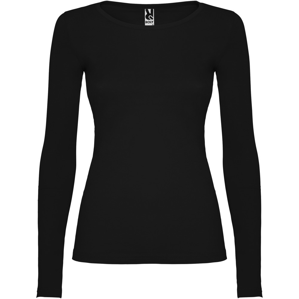 Hosszúujjú, oldalvarott, enyhén karcsúsított női póló 4 rétegű, kerek, keskeny nyakkal. Nincs ujj- és aljpasszé. Megerősített nyaki varrások. A férfi modell körkötött, a gyermek és női modell oldalvarrott. Szürke szín: 85% pamut és 15% viszkóz, 160 g/m2. Egyéb színek: 100% pamut, 160 g/m2. Emblémázás: Hímzés, Szitanyomás