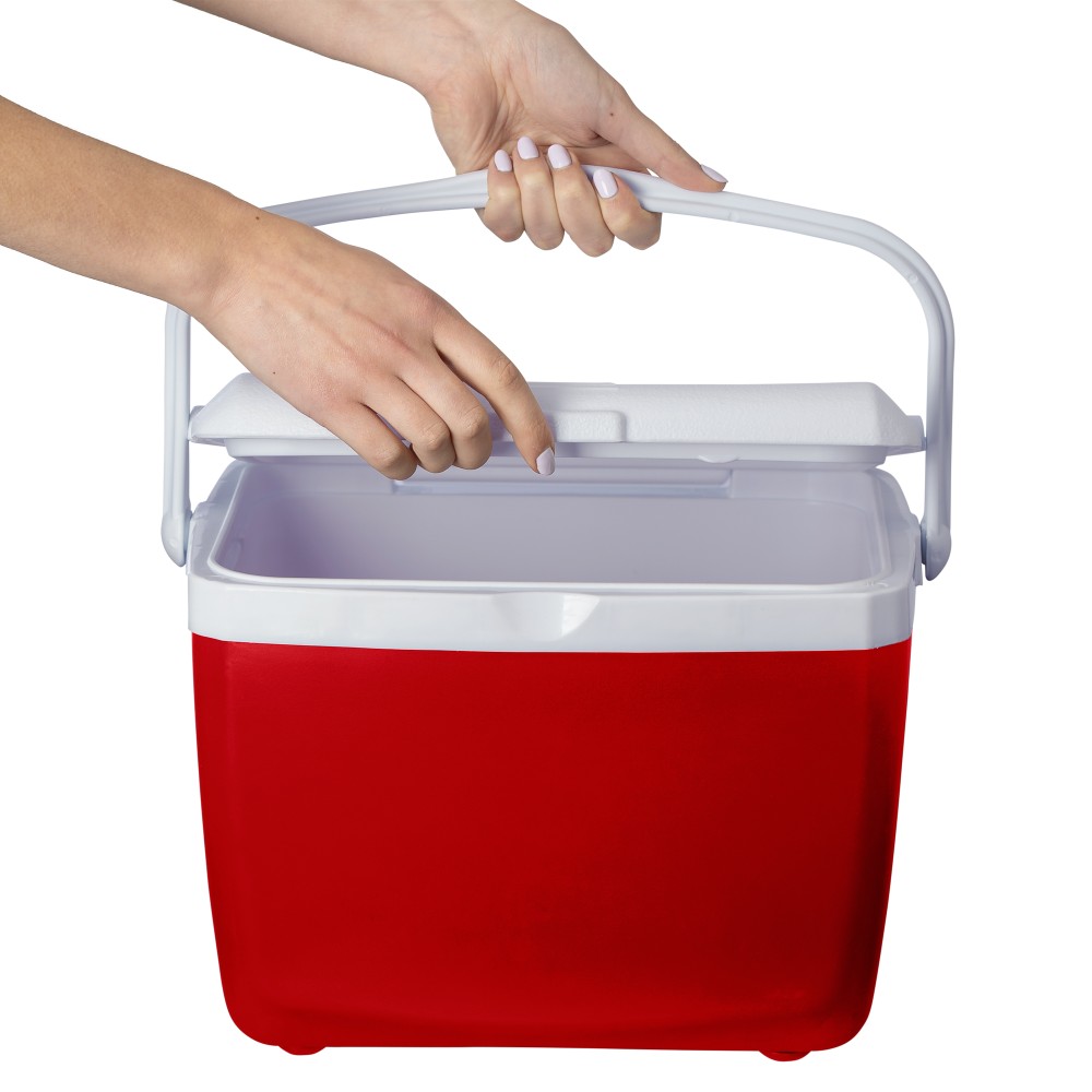 Hűtőláda 13 literes kapacitással, belső és külső borítással, tetővel és szigetelőréteggel ellátva. Tartós, könnyű anyagokból (PU/PE) készült, amelyek ellenállnak a nedvességnek, a vegyszereknek és a mindennapi igénybevételnek. A tartalma 8-12 órán át hidegen, vagy 4-5 órán át melegen tartható. Kialakításának köszönhetően átlósan belefér egy 1,5 literes üdítőspalack. Erős fogantyúval rendelkezik a könnyű szállítás érdekében.