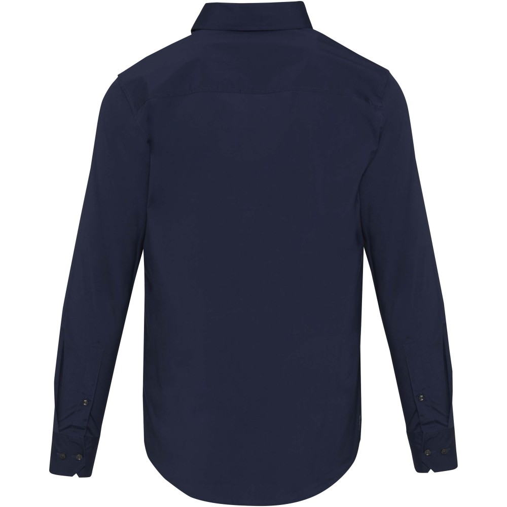 A Carnelian hosszúujjú férfi puplin ing modern kifinomultságot és fokozott kényelmet ötvöz. Kiváló minőségű, BCI-tanúsítvánnyal rendelkező pamutból készült, hozzáadott rugalmassággal, finom 30 denier kétrétegű sodrott szálszerkezettel, amely sima felületet, kivételes tartósságot és luxus érzetet biztosít. A könnyű puplin szövet friss, tiszta megjelenést kölcsönöz, míg a normál fazon mozgásszabadságot és egész napos kényelmet biztosít. Klasszikus, normál gallérral ellátott Carnelian ing sokoldalúan viselhető, mind üzleti, mind alkalmi viselethez. Puplin 97% BCI pamutból és 3% elasztánból, 133 g/m2. Emblémázás: Hímzés