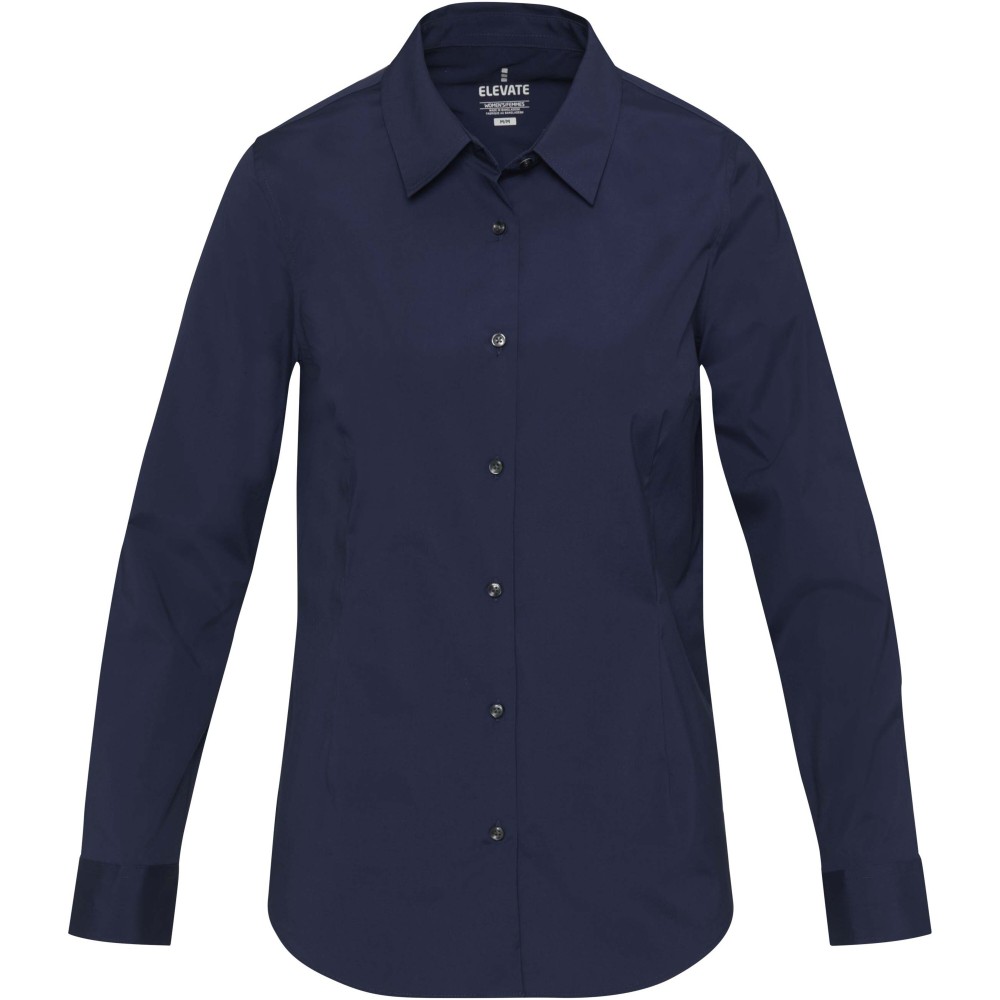 A Carnelian hosszúujjú női puplin ing letisztult stílust és rugalmas, nőies szabást kínál. Prémium, BCI minősítésű, rugalmas pamutból készült, finoman szőtt, 30 denieres, kétrétegű, csavart fonalszerkezete puha, kiváló minőségű kidolgozást és tartós formát biztosít. Normál szabással, elöl és hátul formázó bevarrással tervezték, így előnyös sziluettet és egész napos kényelmet kínál. Időtlen, normál gallérral készült, a Carnelian ing ötvözi az eleganciát és a teljesítményt, így kifinomult, alapvető darab a mindennapi viselethez. 3% elasztánból és 97% BCI pamutból készült puplin, 133 g/m2. Emblémázás: Hímzés