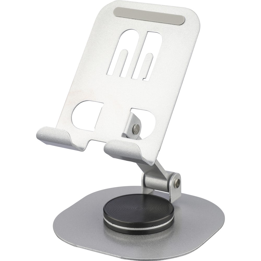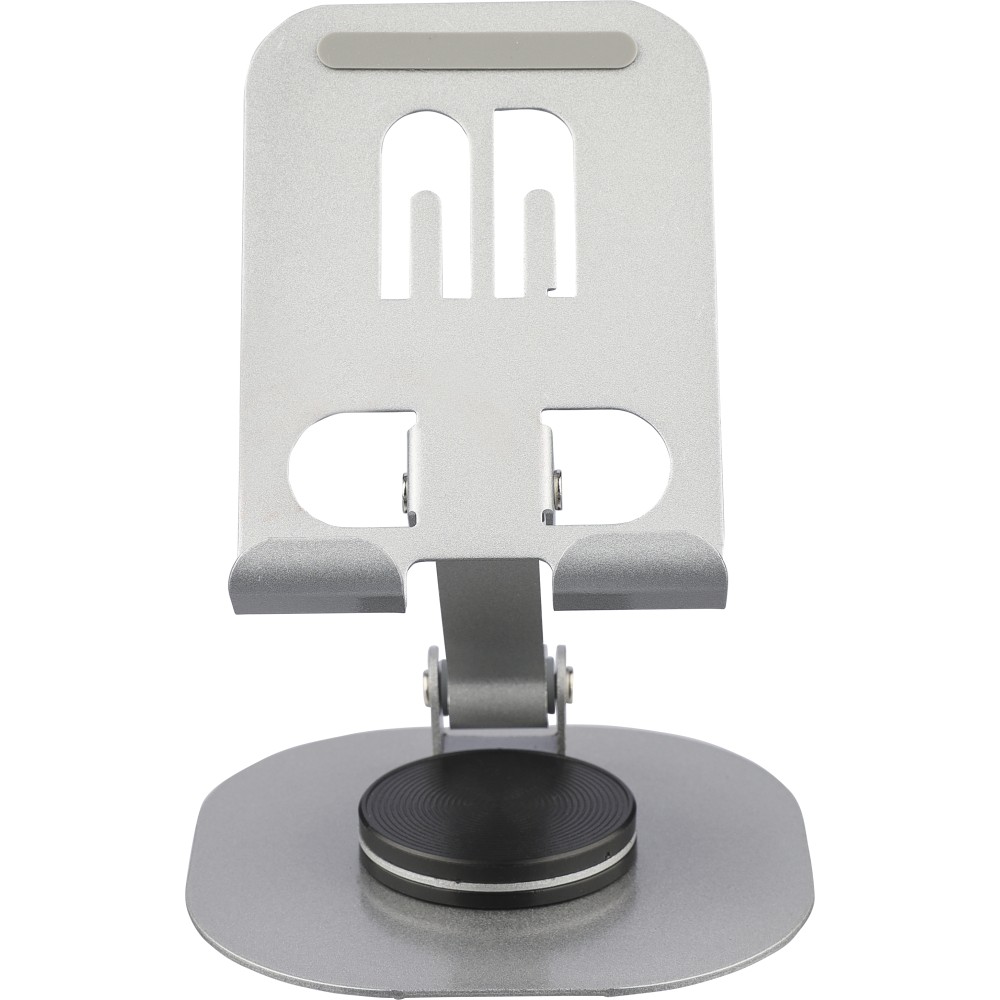 Alumíniumötvözetből készült telefontartó 360 fokos forgatható funkcióval, teljesen lapra hajtható kialakítással a könnyű tárolás érdekében. Stabil tartást biztosító masszív felépítéssel. Egyenként fehér dobozba csomagolva.