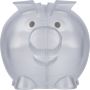 Újrahasznosított PS műanyagból készült, malacpersely. A hátoldalon recycled (újrahasznosított) alapanyagra utaló logó található.