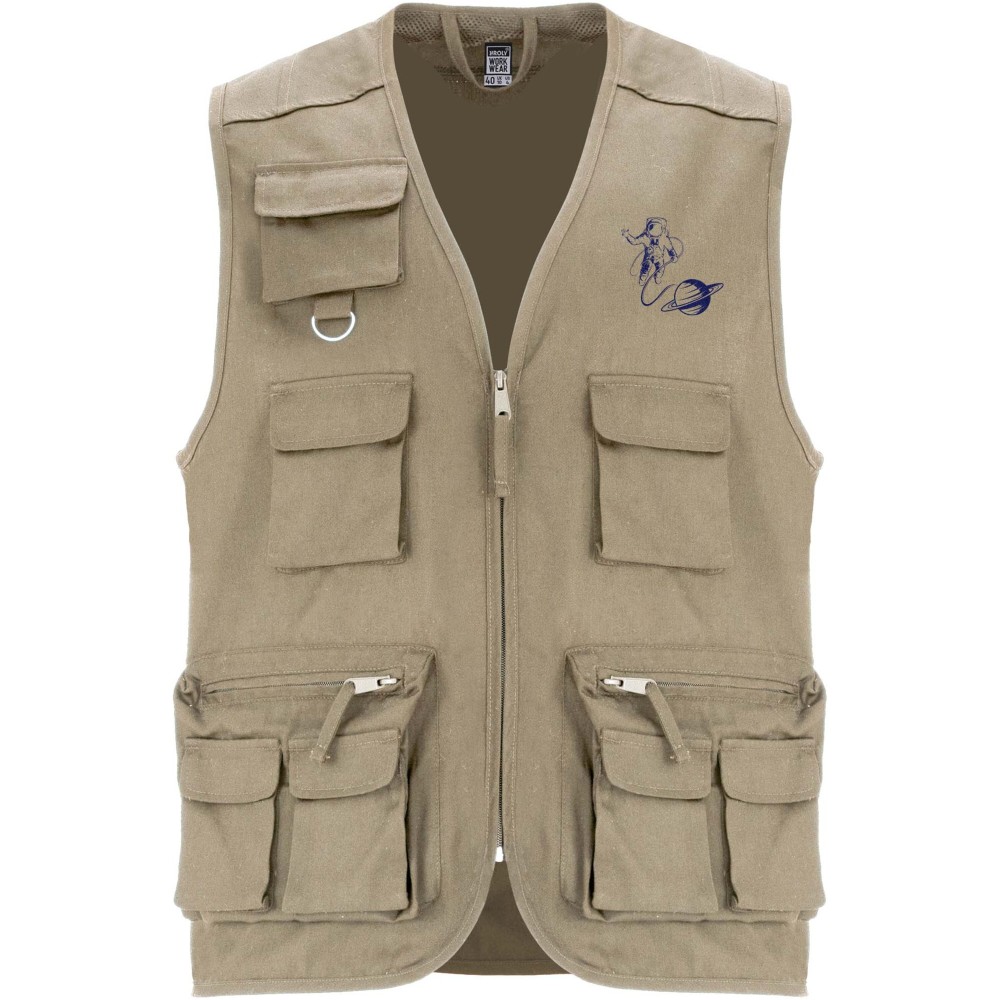 V-nyakú, többfunkciós zsebekkel ellátott munkamellény. Elülső cipzárja húzókával felszerelt. A mellrészen három zseb található, amelyek hajtókával és tépőzárral záródnak, a felső zseb pedig multifunkciós gyűrűvel kiegészített. Két cipzáras és húzókával ellátott oldalsó zsebbel rendelkezik, amelyeken két további, hajtókás és tépőzáras zseb helyezkedik el. A hátoldalon két hajtókás, tépőzáras zseb található. A nyakkivágás, a karkivágások és az derékrész díszítőszegéllyel van ellátva.