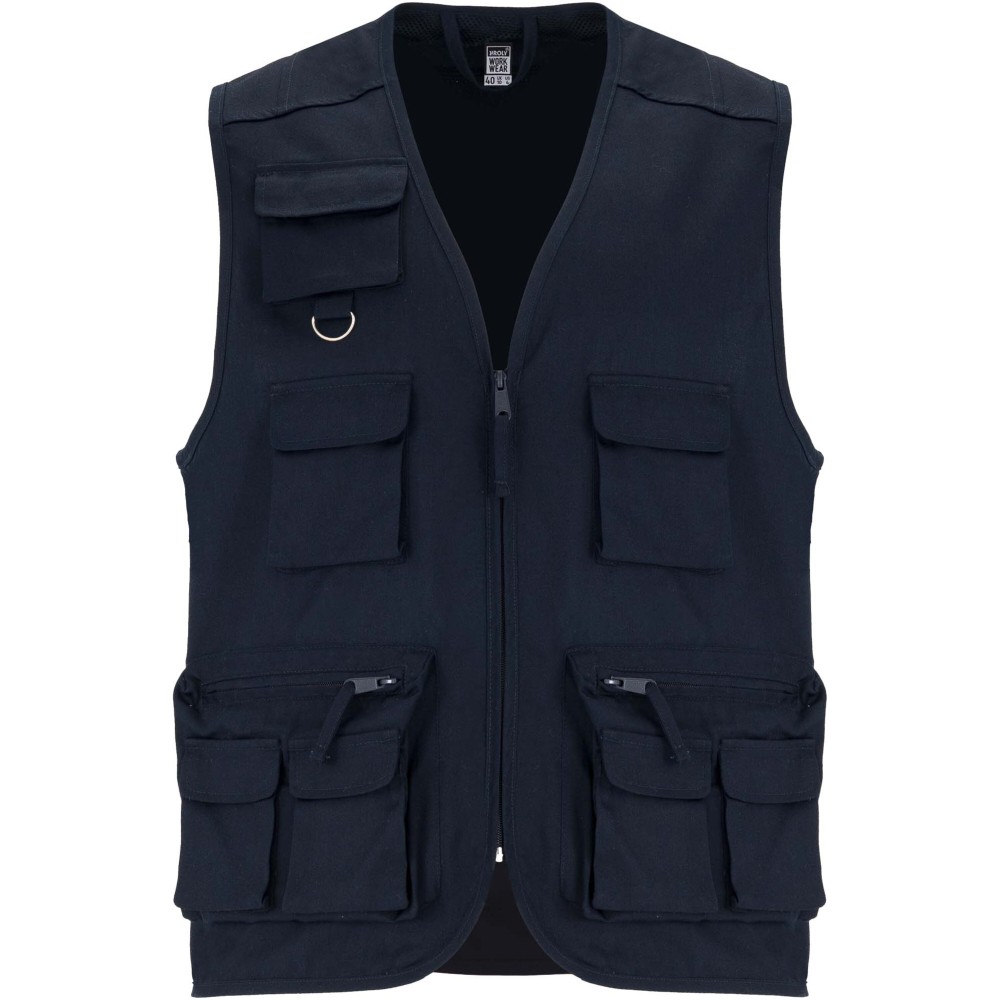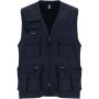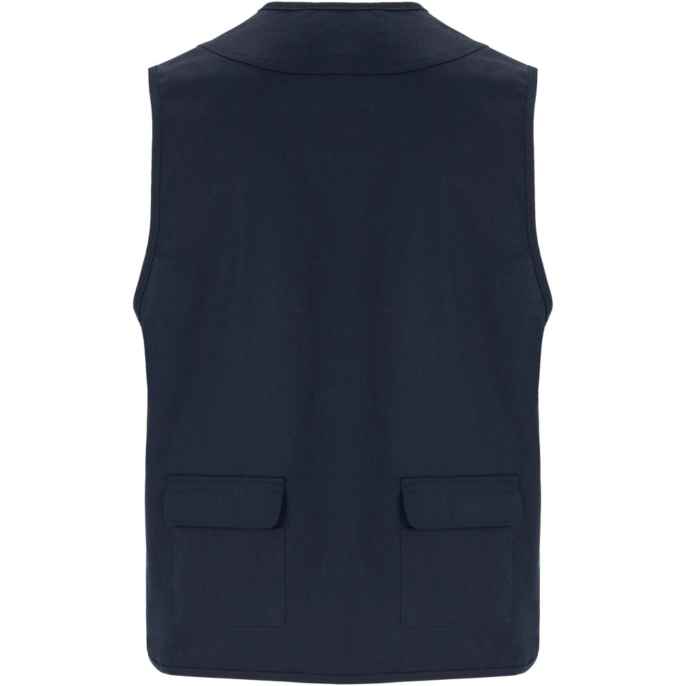 V-nyakú, többfunkciós zsebekkel ellátott munkamellény. Elülső cipzárja húzókával felszerelt. A mellrészen három zseb található, amelyek hajtókával és tépőzárral záródnak, a felső zseb pedig multifunkciós gyűrűvel kiegészített. Két cipzáras és húzókával ellátott oldalsó zsebbel rendelkezik, amelyeken két további, hajtókás és tépőzáras zseb helyezkedik el. A hátoldalon két hajtókás, tépőzáras zseb található. A nyakkivágás, a karkivágások és az derékrész díszítőszegéllyel van ellátva.