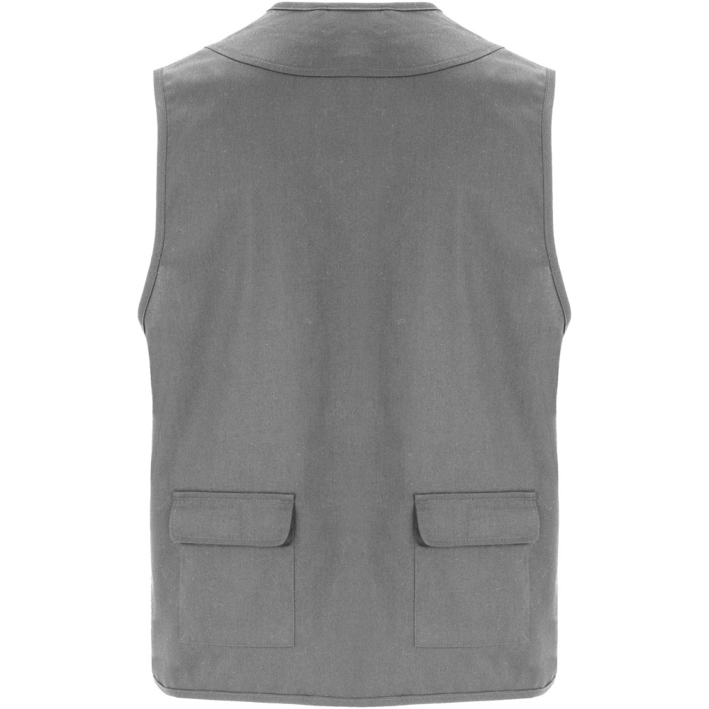 V-nyakú, többfunkciós zsebekkel ellátott munkamellény. Elülső cipzárja húzókával felszerelt. A mellrészen három zseb található, amelyek hajtókával és tépőzárral záródnak, a felső zseb pedig multifunkciós gyűrűvel kiegészített. Két cipzáras és húzókával ellátott oldalsó zsebbel rendelkezik, amelyeken két további, hajtókás és tépőzáras zseb helyezkedik el. A hátoldalon két hajtókás, tépőzáras zseb található. A nyakkivágás, a karkivágások és az derékrész díszítőszegéllyel van ellátva.
