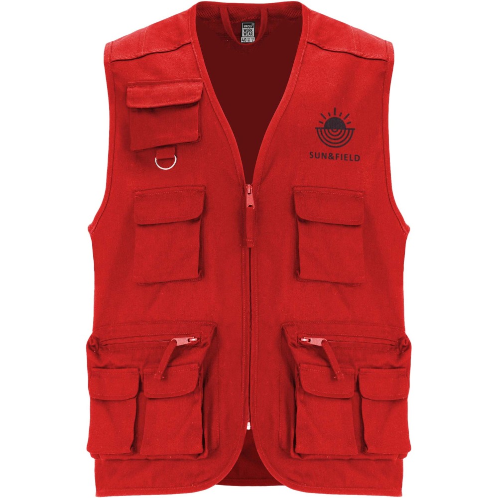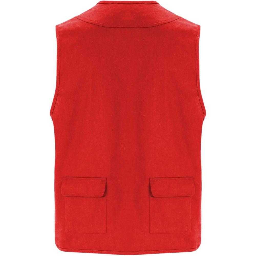 V-nyakú, többfunkciós zsebekkel ellátott munkamellény. Elülső cipzárja húzókával felszerelt. A mellrészen három zseb található, amelyek hajtókával és tépőzárral záródnak, a felső zseb pedig multifunkciós gyűrűvel kiegészített. Két cipzáras és húzókával ellátott oldalsó zsebbel rendelkezik, amelyeken két további, hajtókás és tépőzáras zseb helyezkedik el. A hátoldalon két hajtókás, tépőzáras zseb található. A nyakkivágás, a karkivágások és az derékrész díszítőszegéllyel van ellátva.