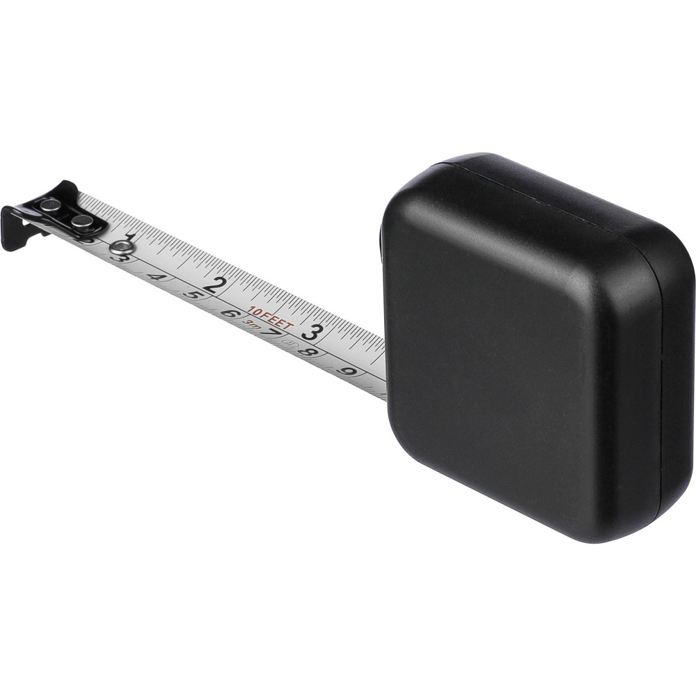 Mérőszalag. 3 méteres, 16 mm széles fém szalaggal, amelyen centiméter- és inch-beosztás is található. MID tanúsítvánnyal rendelkezik. Ultrahangos technológiával összeszerelt (csavarmentes). Nyomógombbal és zárral. Egyenként barna kartondobozba csomagolva. Anyaga: ABS. Emblémázás: Tamponnyomás