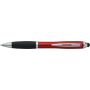Golyóstoll egyszínű, gumírozott felületű testtel, ezüstszínű kiegészítőkkel és fekete, kapacitív érintőképernyőkhöz használható stylus véggel. Újrahasznosított ABS-ből készült. Nyomógombos szerkezettel, kék tollbetéttel és a tolltesten gravírozott újrahasznosított logóval rendelkezik.
