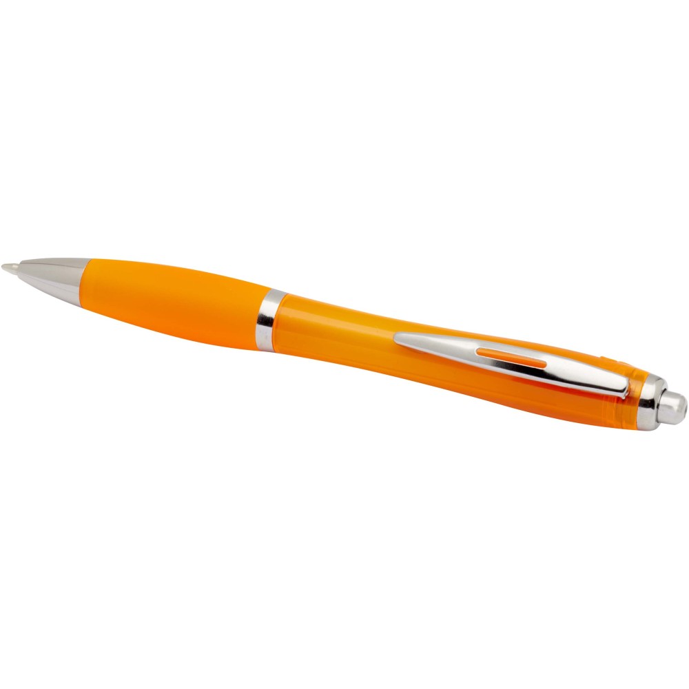 A Nash újrahasznosított műanyagból készült nyomógombos golyóstoll stílusos, ívelt kialakítású, áttetsző színes tolltesttel, ezüst díszítéssel és a tolltest színével megegyező, kényelmes írást biztosító puha fogórésszel rendelkezik. Az RCS tanúsítvánnyal rendelkező újrahasznosított ABS műanyagból készült termék segít csökkenteni a szűz alapanyagok felhasználását, miközben megőrzi tartósságát. A toll hátoldalán található rABS logó jelzi az újrahasznosított anyagösszetételt. Tinta színe: kék. Tollhegy mérete: 1.0 mm. Íráshossz: 1000 méter.