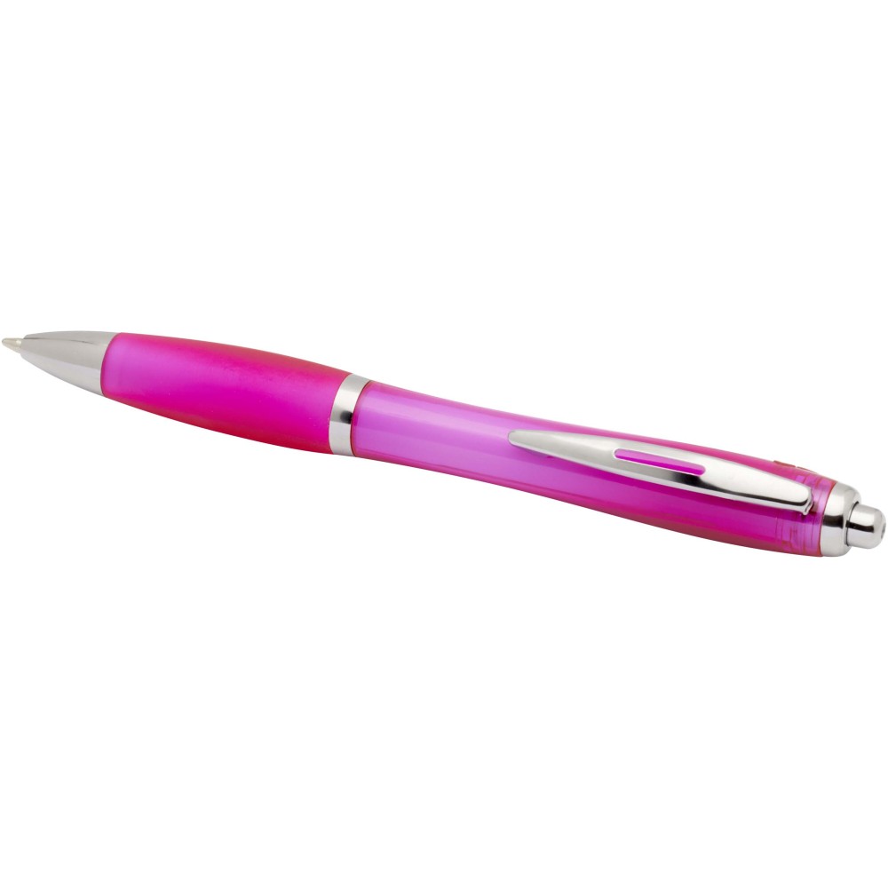 A Nash újrahasznosított műanyagból készült nyomógombos golyóstoll stílusos, ívelt kialakítású, áttetsző színes tolltesttel, ezüst díszítéssel és a tolltest színével megegyező, kényelmes írást biztosító puha fogórésszel rendelkezik. Az RCS tanúsítvánnyal rendelkező újrahasznosított ABS műanyagból készült termék segít csökkenteni a szűz alapanyagok felhasználását, miközben megőrzi tartósságát. A toll hátoldalán található rABS logó jelzi az újrahasznosított anyagösszetételt. Tinta színe: fekete. Tollhegy mérete: 1.0 mm. Íráshossz: 1000 méter.