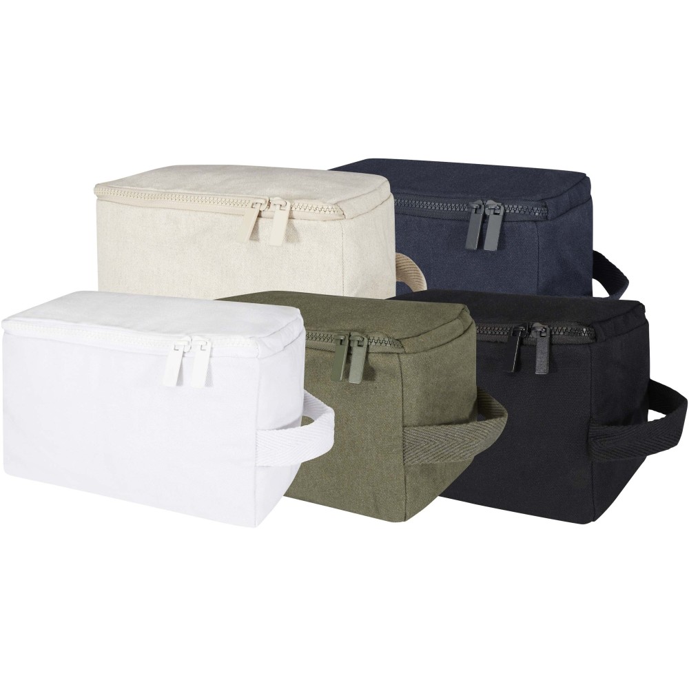 Piperetáska 500 g/m2 újrahasznosított pamutból és poliészterből, tágas fő rekesszel, biztonságos cipzáras záródással és több belső zsebbel, amely ideális piperecikkek tárolására. Sokoldalú kialakításának köszönhetően kisebb tárgyak - például zoknik vagy töltők - rendszerezésére is kiváló, így a csomagok rendezetten tarthatók. A táska Cyclo újrahasznosított szálakat tartalmaz, amelyek előválogatott hulladékból készülnek, és ennek megfelelően alakul a fonal színe is. Ezek a szálak nemcsak a primer nyersanyagok iránti igényt csökkentik, hanem elköteleződést is mutatnak a körforgásos szemlélet iránt, elősegítve a hulladékcsökkentést és a zárt rendszerű gyártást. Minden táskához tartozik egy Aware nyomkövető is, amelynek QR-kódja révén nyomon követhető a termék eredete és útja, ezáltal fokozva az ellátási lánc átláthatóságát, és erősebb kapcsolatot teremtve a felhasználó és a termék gyártási folyamata között. Emblémázás: Szitanyomás