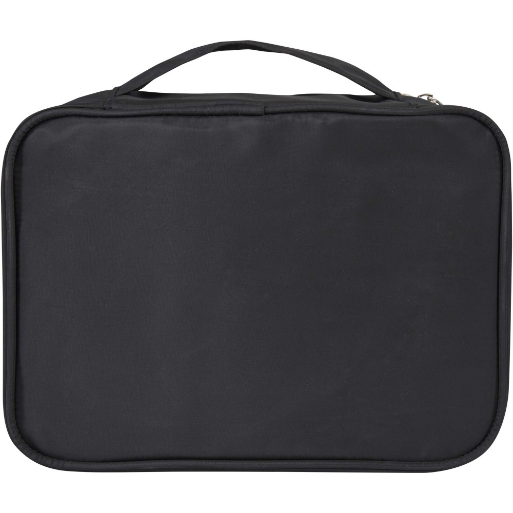 A Muse sminkrendező gondosan, tisztán és kompakt módon tárolja az ecseteket, púdereket, bőrápolókat és egyéb szépségápolási kellékeket. A GRS-tanúsítvánnyal rendelkező újrahasznosított poliészterből készült szervező ötvözi a praktikusságot a fenntarthatóbb anyagválasztással. Emblémázás: Szitanyomás