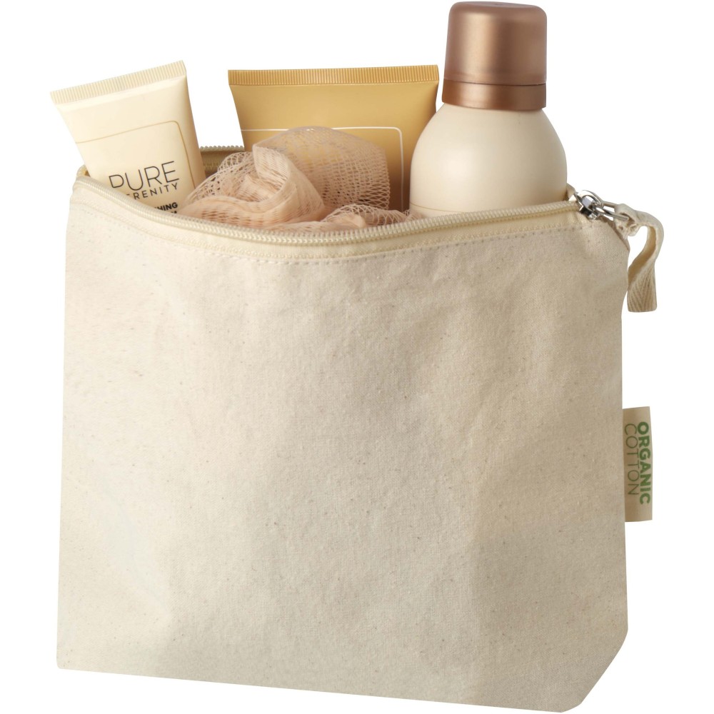 OCS tanúsítvánnyal rendelkező, 100% organikus pamutból készült Odisha neszesszer környezetbarát és fenntartható megoldás. Egy cipzáras rekesszel rendelkezik, amely alkalmas kozmetikai és tisztálkodási szerek tárolására az utazások során. Űrtartalma: 1 liter. 180 g/m2 anyag. Emblémázás: Szitanyomás