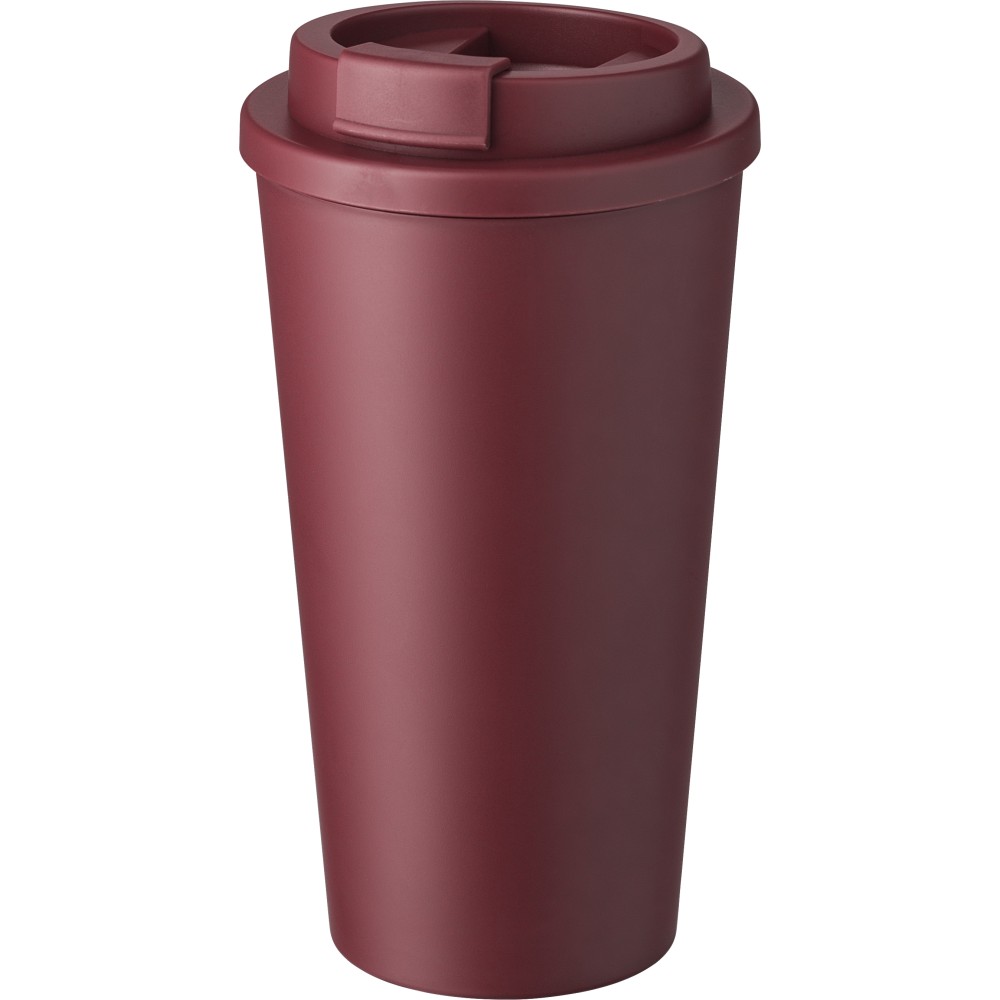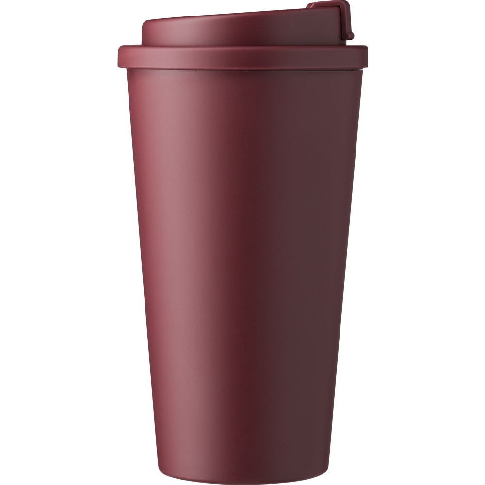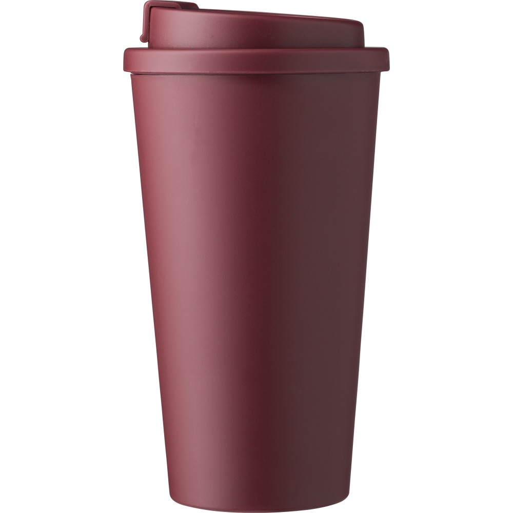 Kávéspohár csavaros fedéllel és felpattintható ivórésszel. Űrtartalom: 475 ml. PP műanyag. Emblémázás: Tamponnyomás