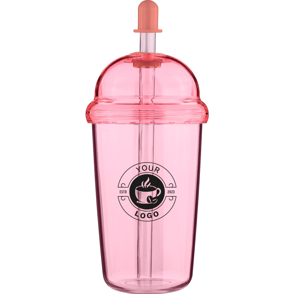 Szívószálas útipohár, 500 ml, rózsaszín