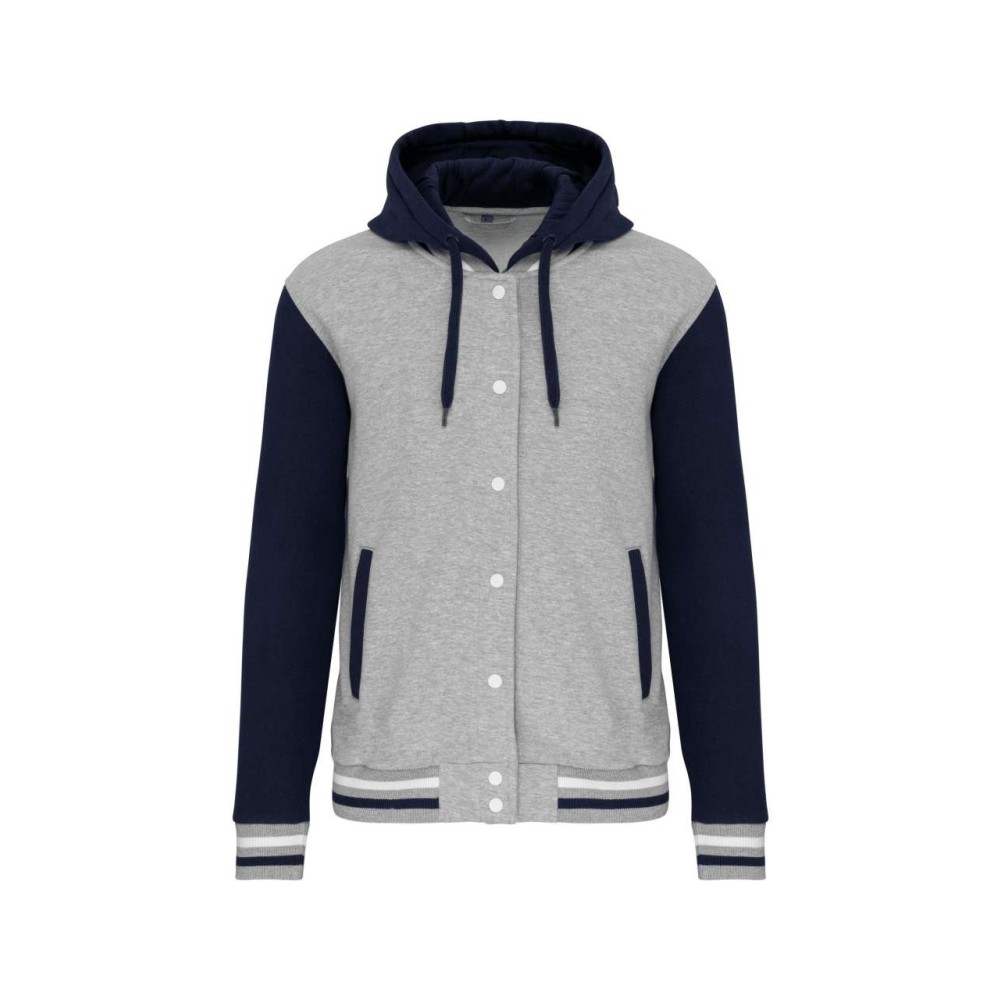 Kariban Uniszex kapucnis pulóver, Oxford Grey/Navy/Whi