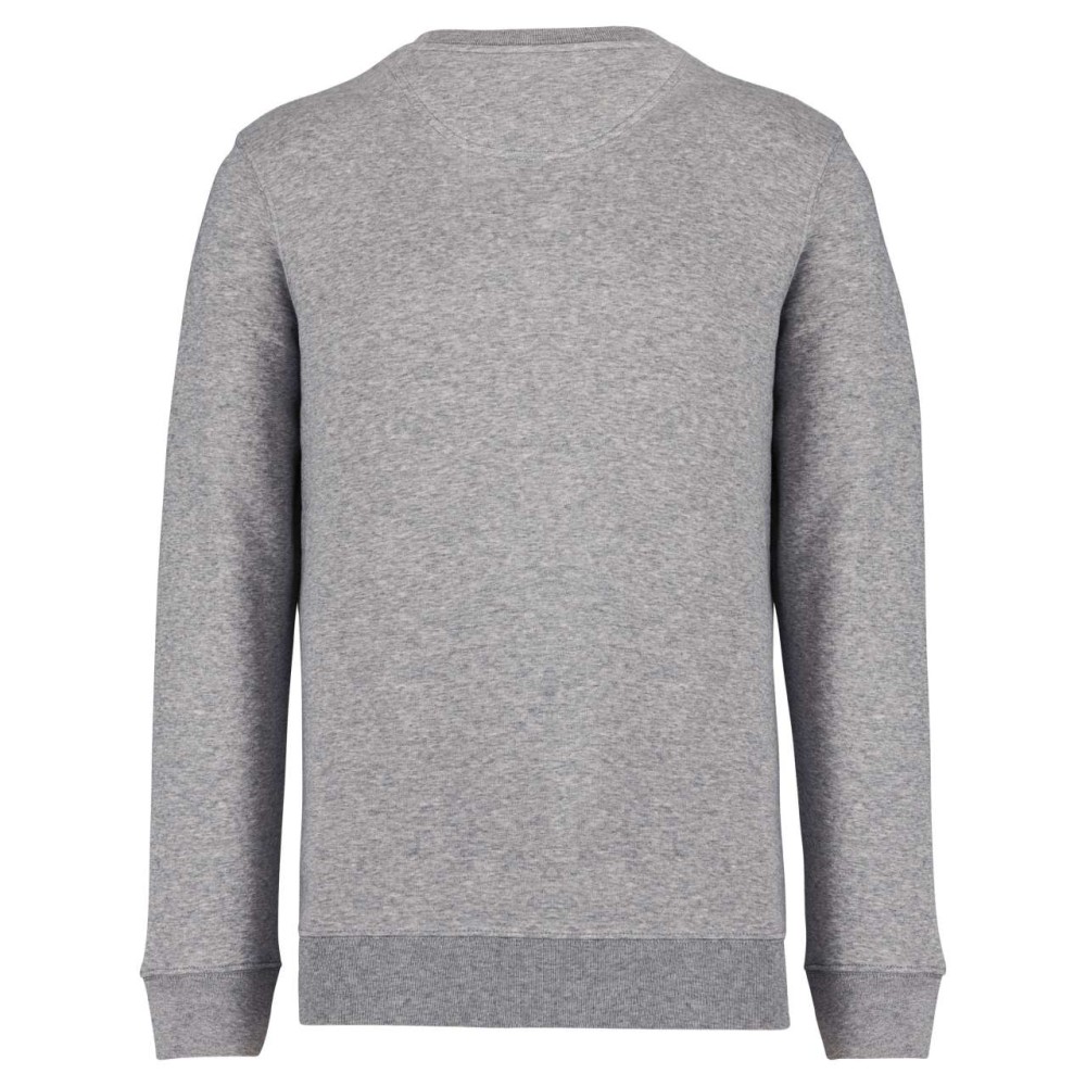 85 % bio, fésült pamutból és 15 % újrahasznosított poliészterből készült. Unisex. Egyenes szabás. LSF (Low Shrinkage Fleece: előzsugorított polár). Kerek nyakkivágás. Félhold alakú. Méretcímke organikus pamut és újrahasznosított poliészter logóval. 1x1 bordás nyakpasszé, alsó szegély és kézelő. Duplaöltés a kézelőn, karöltőben és kézelőn. Egyszeres felülvarrás a nyakkivágáson. Belső szalagozott nyakrész. A nyakrészen nincs márkajelzés, csak méretcímke a könnyebb dekorálás érdekében. A ruhadarabhoz kartonpapírból készült ismertetővel, amely felsorolja a felhasznált környezetbarát anyagokat. OEKO-TEX N CQ1007/7 STANDARD 100 tanúsítvánnyal rendelkezik. IFTH. 350 g/m2. Emblémázás: Hímzés, Szitanyomás