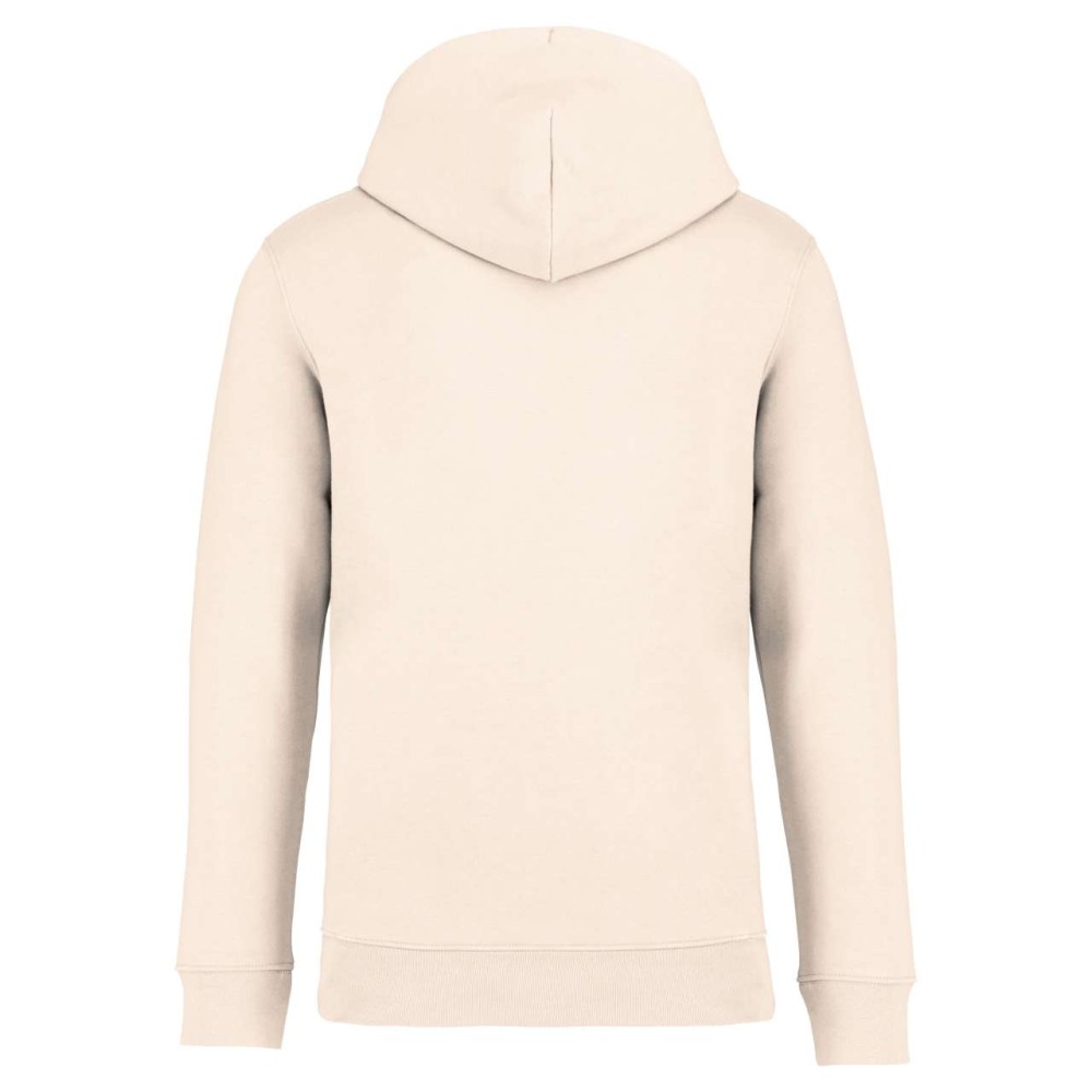 85 % bio, fésült pamutból és 15 % újrahasznosított poliészterből készült. Unisex. Egyenes szabás. Méretcímke organikus pamut és újrahasznosított poliészter logóval. LSF (Low Shrinkage Fleece: előzsugorított polár) kezelés. Kapucni. 1x1 bordás szegély és kézelő. Duplatűzés a kézelőn, a szegélyen és a nyaknál. Szalagozott nyakbelső hátul. Bélelt kapucni, a nyaknyíláson nincs felülvarrás, csak egy megkötés, hogy a húzózsinór a felső részen maradjon. Kerek húzózsinór a kapucnin fém véggel. Kenguru zseb. Nincs márkajelzés a nyakrészen, csak egy méretcímke a könnyű dekorálás érdekében. Karton függőcímkével érkezik, amely felsorolja a termék előállításához felhasznált környezetbarát anyagokat. Organikus pamutfonal. OEKO-TEX N CQ1007/7 STANDARD 100 tanúsítvánnyal rendelkezik. IFTH. 350 g/m2. Emblémázás: Hímzés, Szitanyomás
