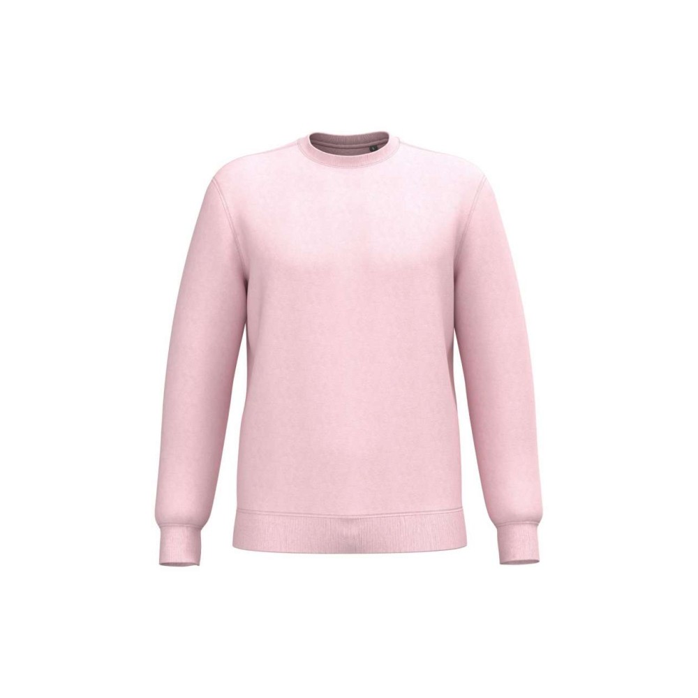 280 g/m2, 50% gyűrött pamut/50% újrahasznosított poliészter. Csiszolt polár anyag, egyenes szabás, környakas fazon. Vágott és varrott, 1x1 bordás, csőszerű összeállítás a nyakvonal, a mandzsetták és az alsó szegély jobb kiviteléért. Tónusban megegyező jersey szalag a nyakvonal belsejében. Nincs márkajelzés a nyakvonalon, csak méretcímke a könnyű dekorálás érdekében.