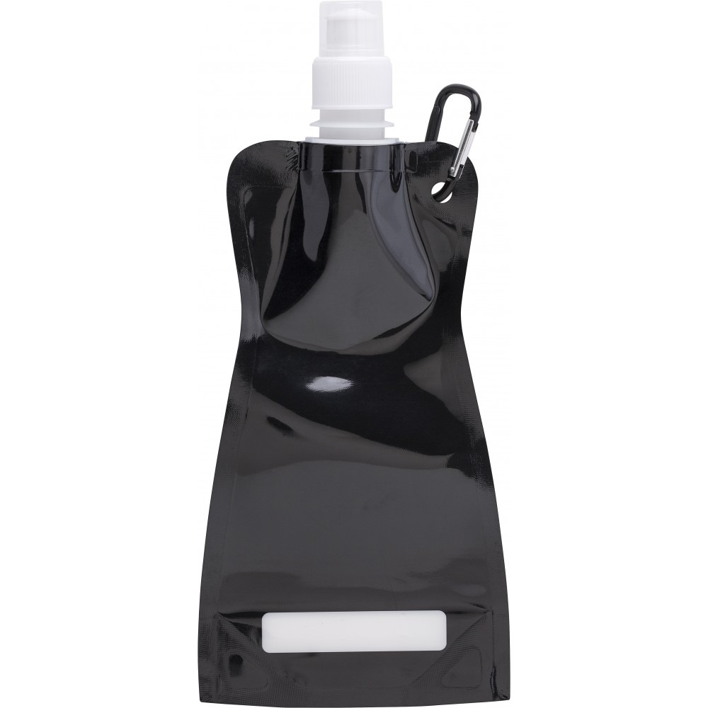 Összehajtható vizeskulacs karabinerrel. Nem szivárgásmentes. Mosogatógépben nem tisztítható. 420ml. BPA-mentes műanyag. Emblémázás: Tamponnyomás