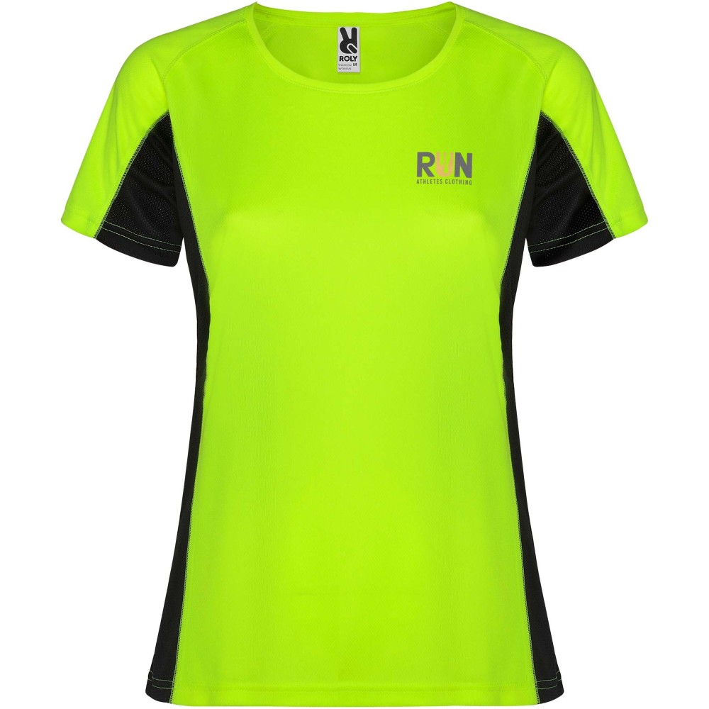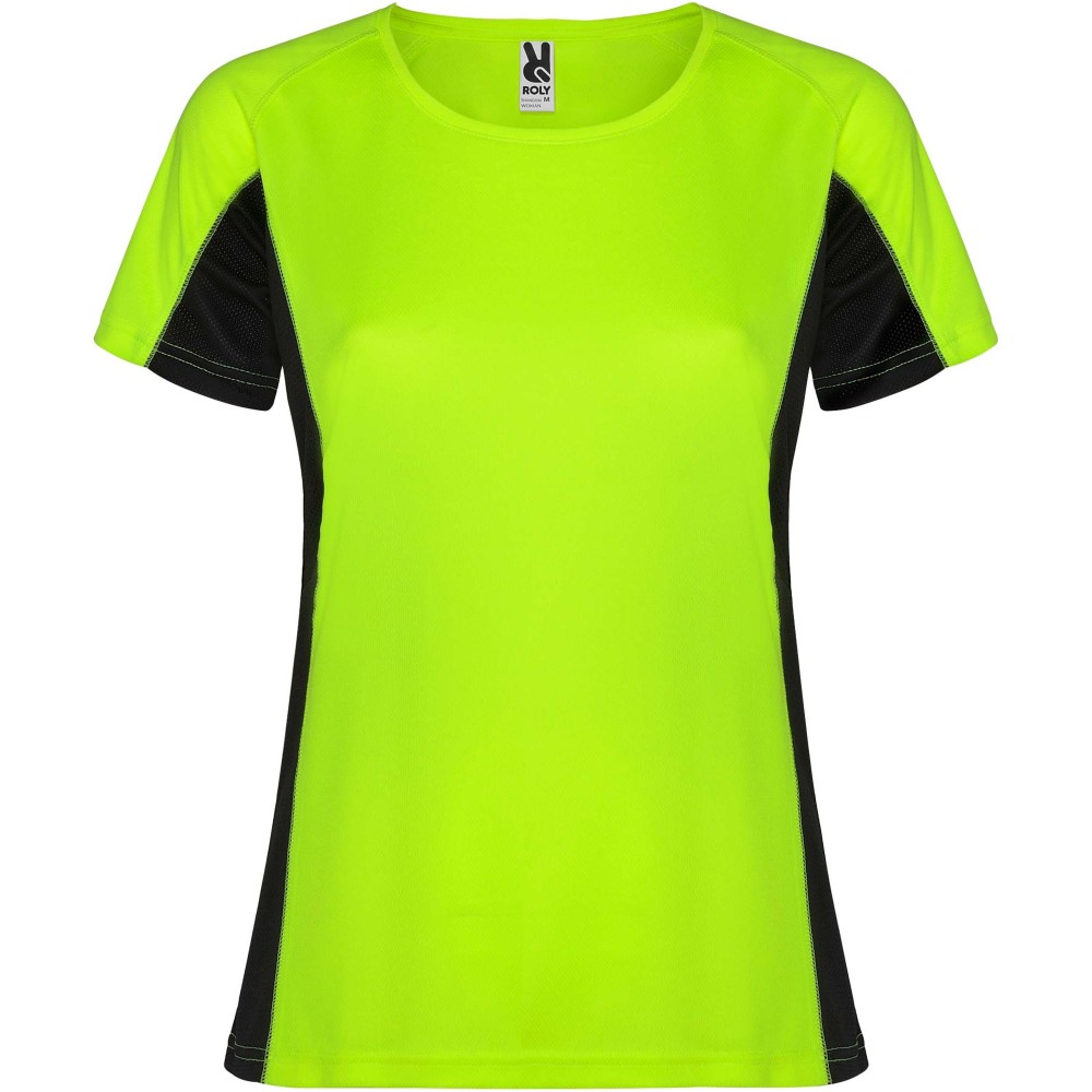 Roly Shanghai rövid ujjú női sportpóló, Fluor Yellow, Black