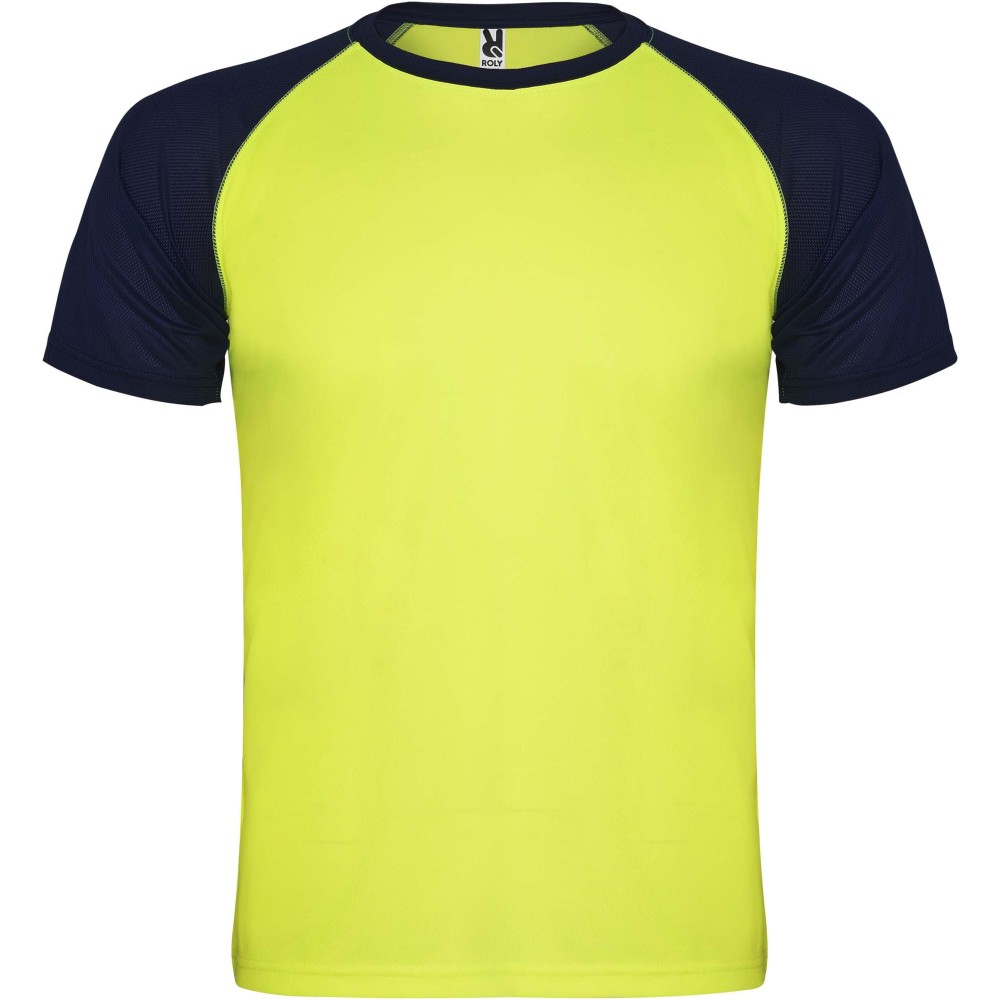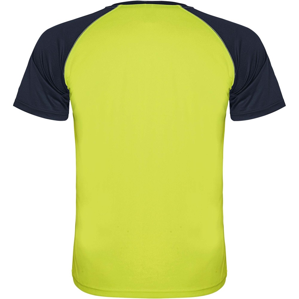 Roly Indianapolis rövid ujjú uniszex sportpóló, fluor yellow, navy blue