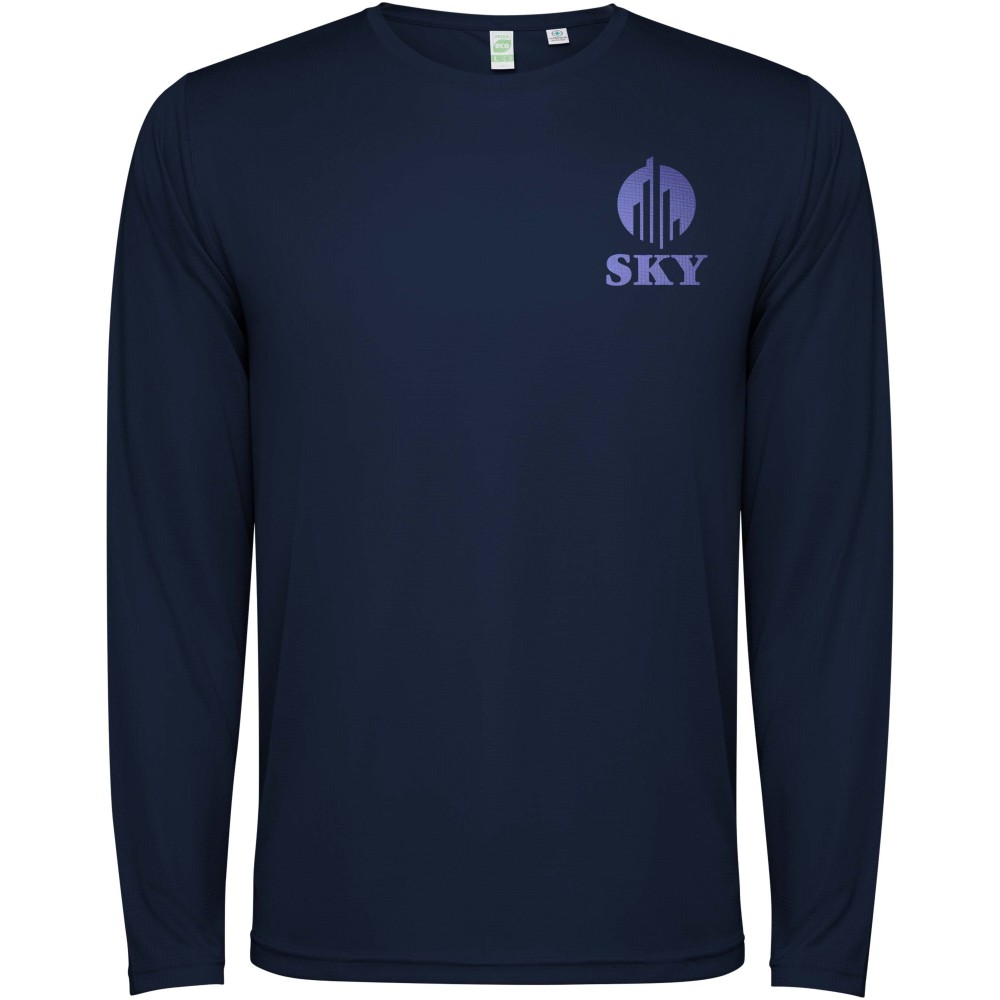 Gyerek hosszúujjú uniszex technikai póló. Gallér színazonos varrással. Hátul enyhén hosszított fazon. Emblémázás: Hímzés, Szitanyomás