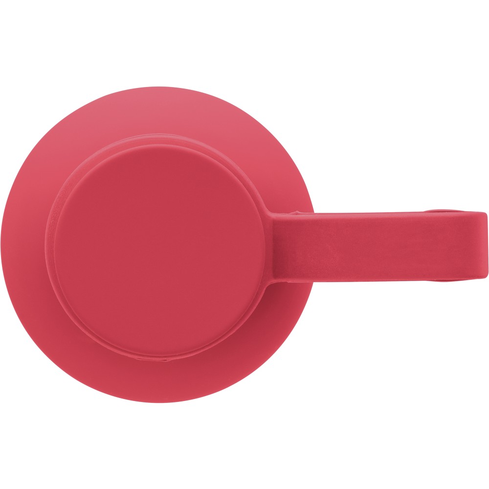 Újrahasznosított rozsdamentes acélból készült duplafalú vákuumpalack, 500 ml-es. 304-es rozsdamentes acél belsővel és 201-es rozsdamentes acél külsővel. Gumírozott felülettel, fém díszítésű csavaros PP kupakkal és szilikon hordfüllel. Gravírozott, újrahasznosított logóval. Csomagolása barna papírdoboz. Emblémázás: Gravírozás