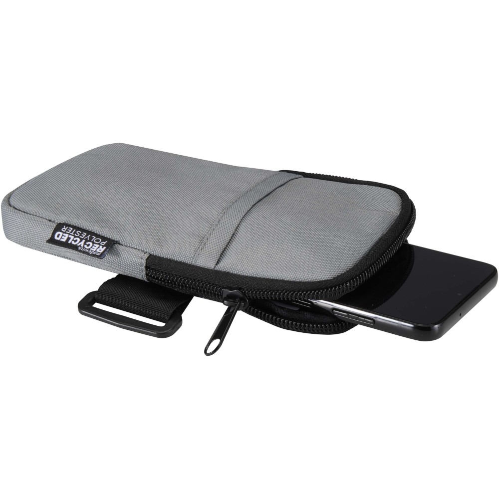 A vízlepergető, GRS tanúsítvánnyal rendelkező újrahasznosított poliészterből készült Byron kulacstartó táska biztonságosan rögzíthető vizespalackokra vagy poharakra, így hidratált maradhat és közben kéznél tarthatja alapvető tárgyait. Az erős tépőzáras rögzítés és a csúszásgátlóval ellátott rugalmas pánt stabil tartást biztosít a palackoknak. A cipzáras főrekeszben biztonságosan tárolhatók az értéktárgyak, beleértve a legtöbb okostelefont, míg az elülső zseb gyors hozzáférést biztosít az apróbb tárgyakhoz, például bankkártyákhoz, igazolványokhoz vagy kulcsokhoz. Ideális választás edzőtermi használatra vagy szabadtéri tevékenységekhez, hiszen tehermentesíti a zsebeket és segíti a rendszerezést, miközben fenntarthatóbb anyaghasználatot képvisel.