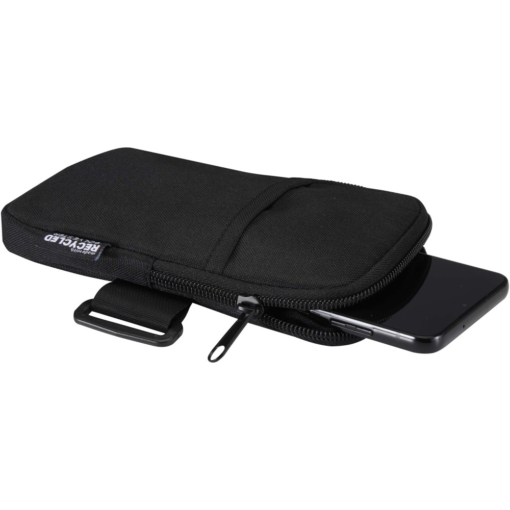 A vízlepergető, GRS tanúsítvánnyal rendelkező újrahasznosított poliészterből készült Byron kulacstartó táska biztonságosan rögzíthető vizespalackokra vagy poharakra, így hidratált maradhat és közben kéznél tarthatja alapvető tárgyait. Az erős tépőzáras rögzítés és a csúszásgátlóval ellátott rugalmas pánt stabil tartást biztosít a palackoknak. A cipzáras főrekeszben biztonságosan tárolhatók az értéktárgyak, beleértve a legtöbb okostelefont, míg az elülső zseb gyors hozzáférést biztosít az apróbb tárgyakhoz, például bankkártyákhoz, igazolványokhoz vagy kulcsokhoz. Ideális választás edzőtermi használatra vagy szabadtéri tevékenységekhez, hiszen tehermentesíti a zsebeket és segíti a rendszerezést, miközben fenntarthatóbb anyaghasználatot képvisel.