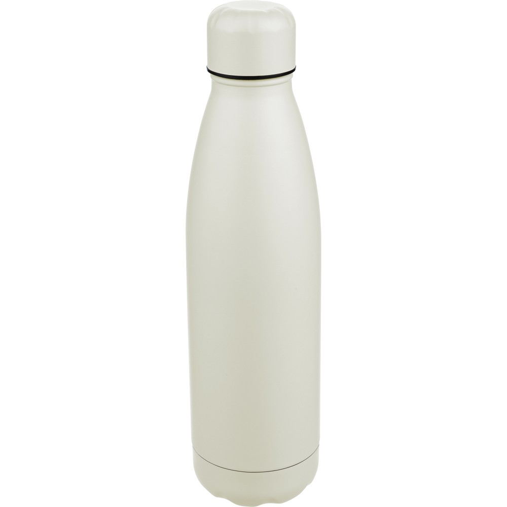 Újrahasznosított rozsdamentes acél, egyfalú ivópalack 700 ml-es űrtartalommal. Hideg italok tárolására alkalmas, és 3-4 órán át hűvösen tartja azokat. A 304-es rozsdamentes acél belső kiváló tartósságot, rozsdaállóságot és biztonságos élelmiszer-érintkezést garantál. Matt színű felülettel, valamint színben illeszkedő csavaros fedéllel és aljjal. Az elülső oldalon gravírozott újrahasznosított logó található. Egyenként barna kartondobozba csomagolva.