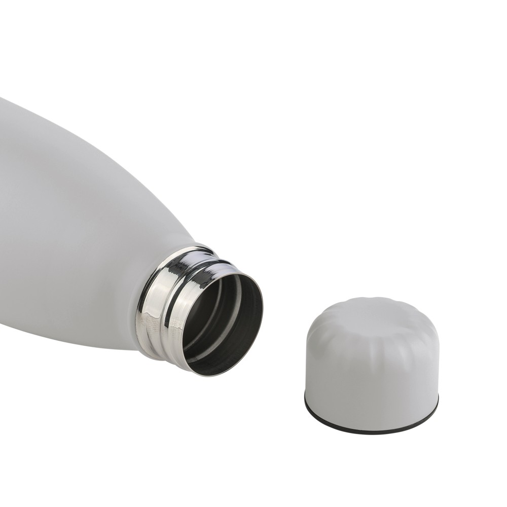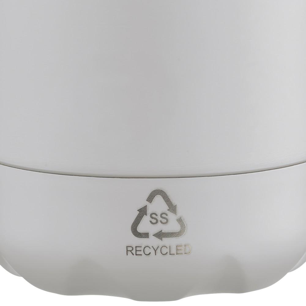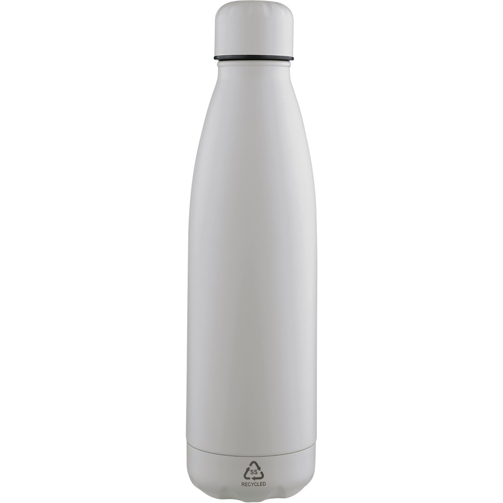 Újrahasznosított rozsdamentes acél, egyfalú ivópalack 700 ml-es űrtartalommal. Hideg italok tárolására alkalmas, és 3-4 órán át hűvösen tartja azokat. A 304-es rozsdamentes acél belső kiváló tartósságot, rozsdaállóságot és biztonságos élelmiszer-érintkezést garantál. Matt színű felülettel, valamint színben illeszkedő csavaros fedéllel és aljjal. Az elülső oldalon gravírozott újrahasznosított logó található. Egyenként barna kartondobozba csomagolva.