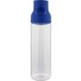 Tritán vizespalack 750 ml-es űrtartalommal, átlátszó palacktesttel és színes kupakkal. Tartós és könnyű anyagokból (PP) készült, amelyek ellenállnak a nedvességnek, a vegyszereknek és a mindennapi igénybevételnek. Mindennapi használatra tervezve; biztonságos nyomógombos zárral és felső hordozófogantyúval rendelkezik. Alkalmas munkához, iskolához vagy szabadtéri tevékenységekhez.